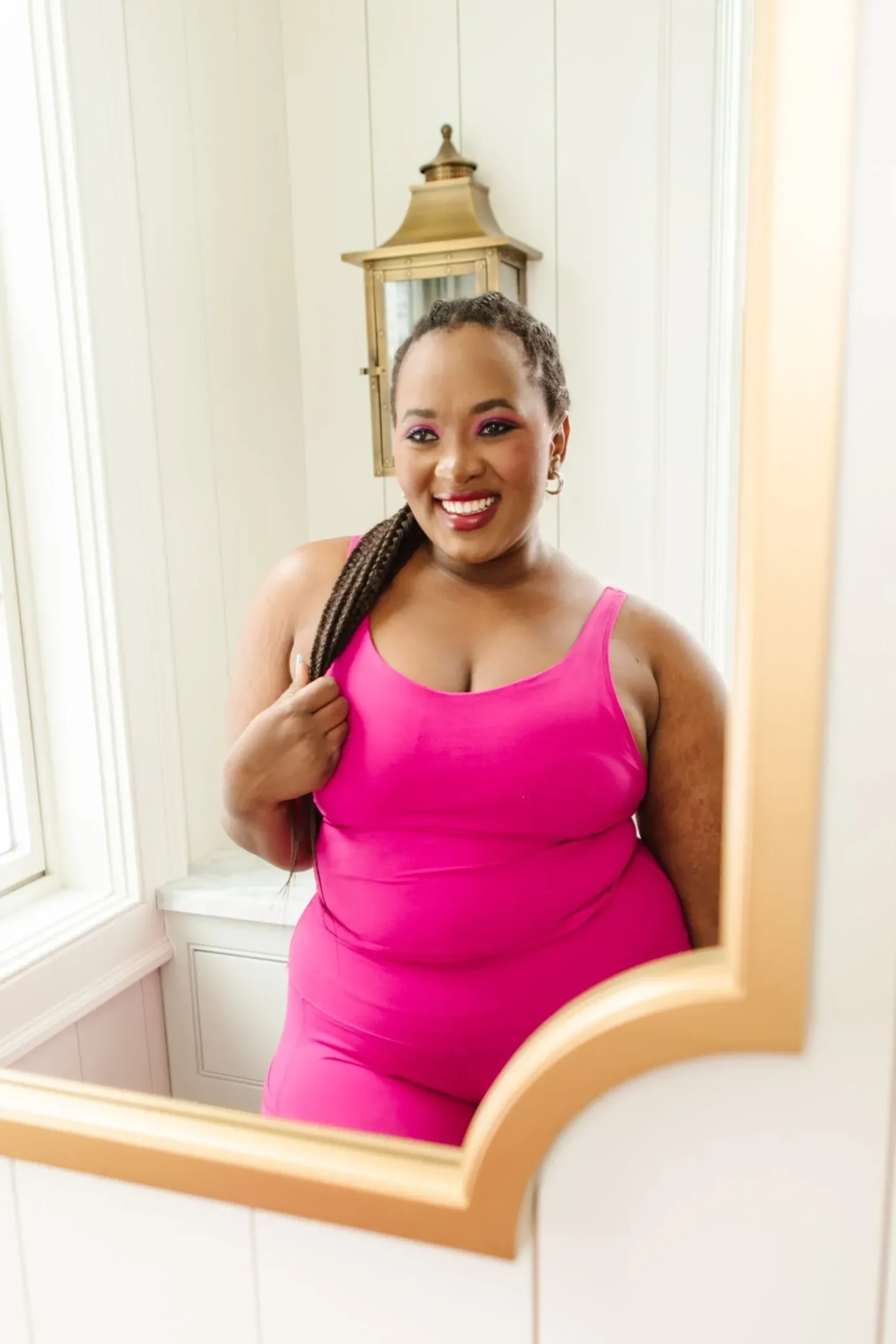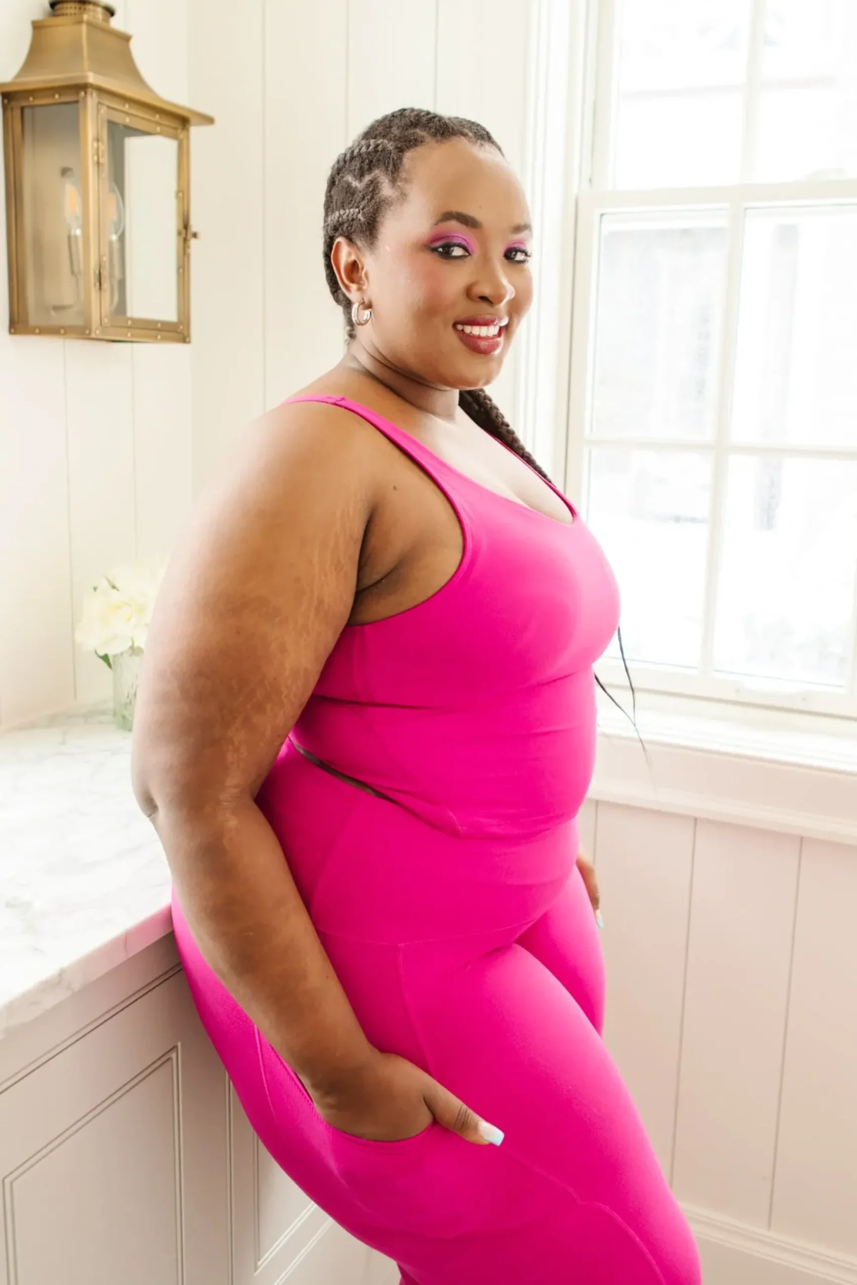 Whatever you’re doing, do it comfortably in the Move With Me Pink Tank! This cute tank features a buttery soft fabric, a slight v-neckline, scooped back, and a cropped length that hits right at your waistline. Pair with leggings and sneakers for a casual and comfortable look!
