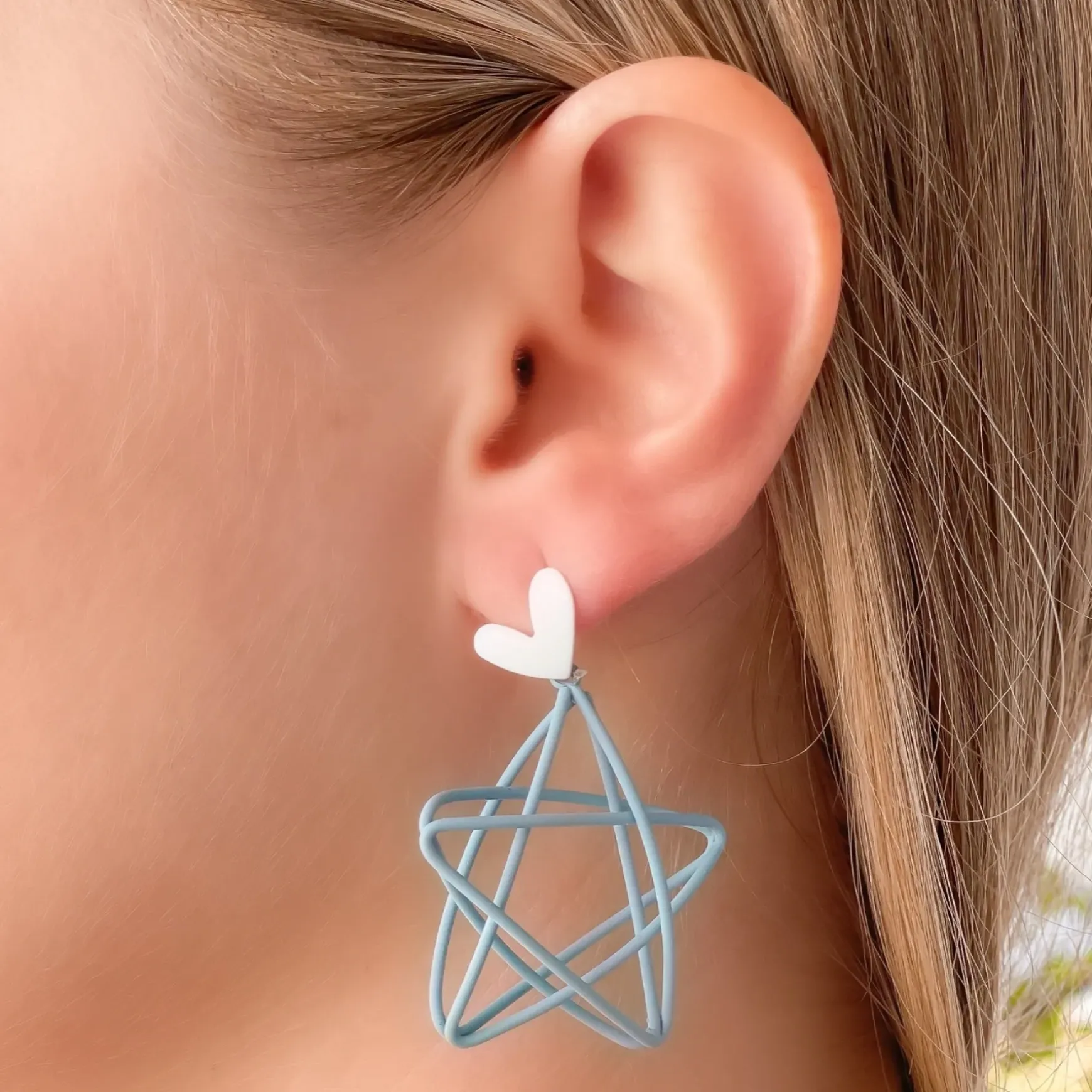Open Star Matte Dangle Earrings – Blue