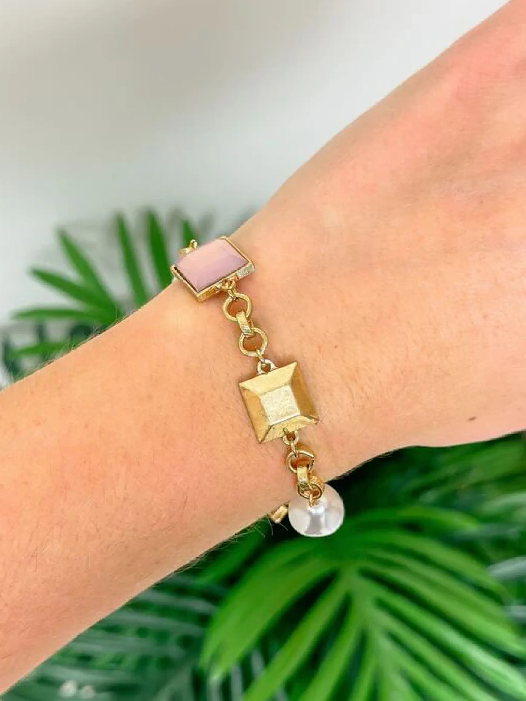 Pearl & Iridescent Stone Station Bracelet – Pink