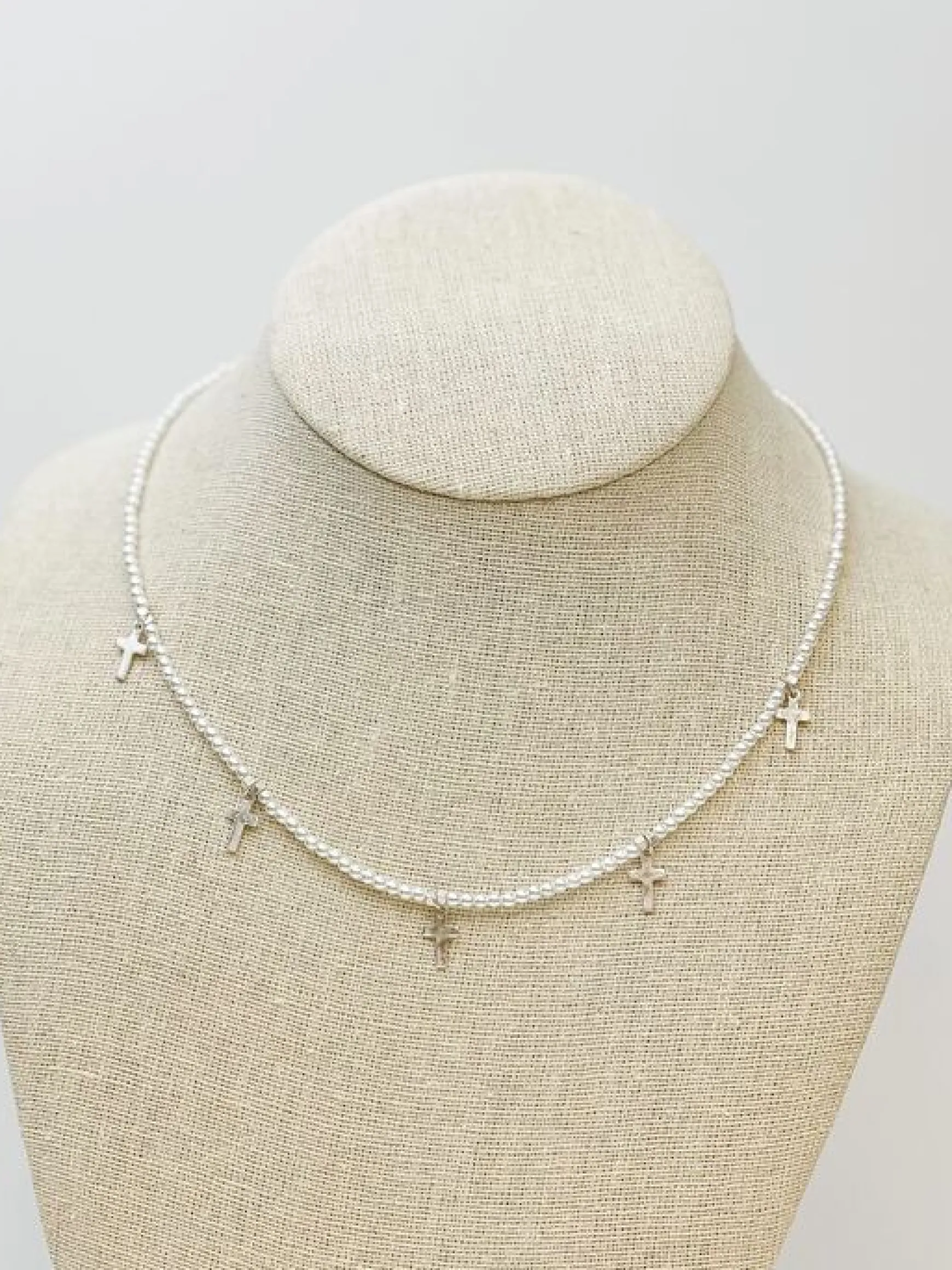 Be the first to review “Pearl Strand Cross Station Necklace – Silver” Cancel reply