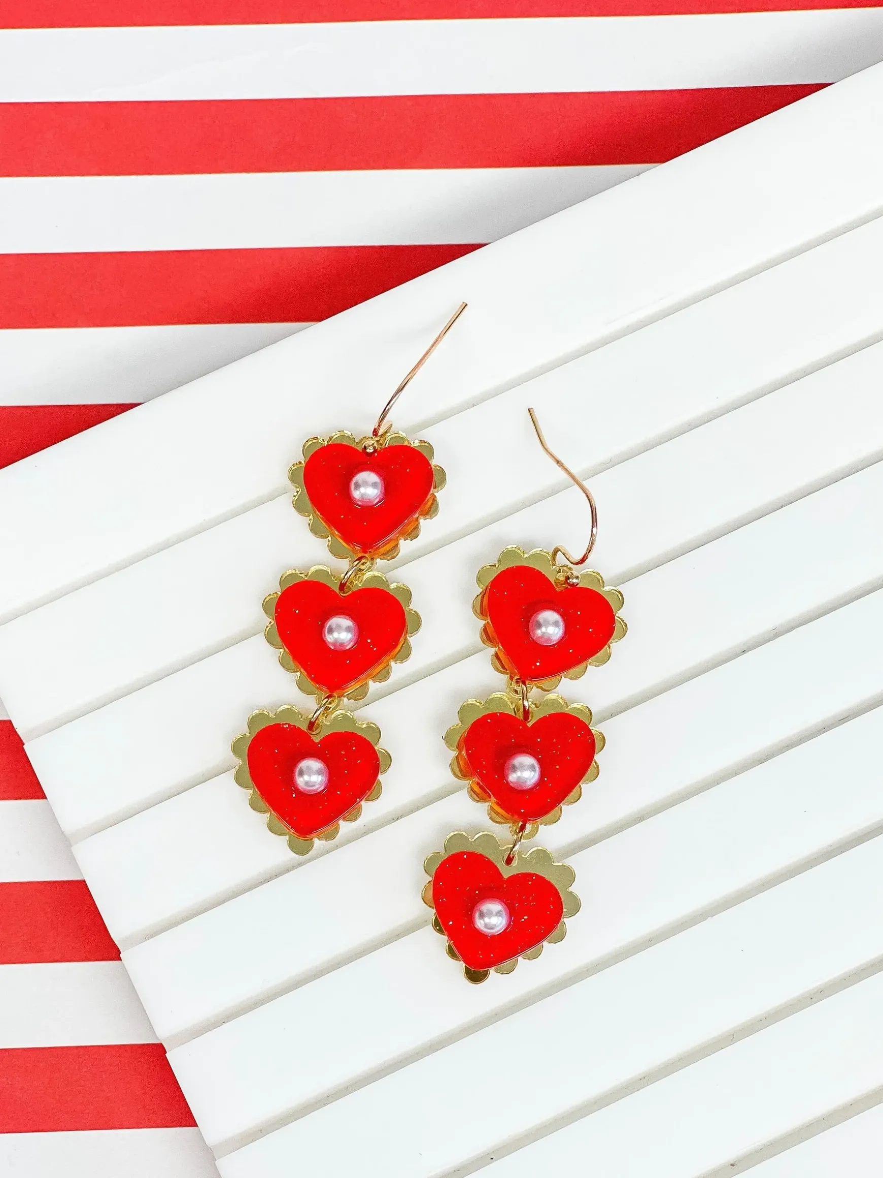 Pearly Heart Trio Dangle Earrings – Red