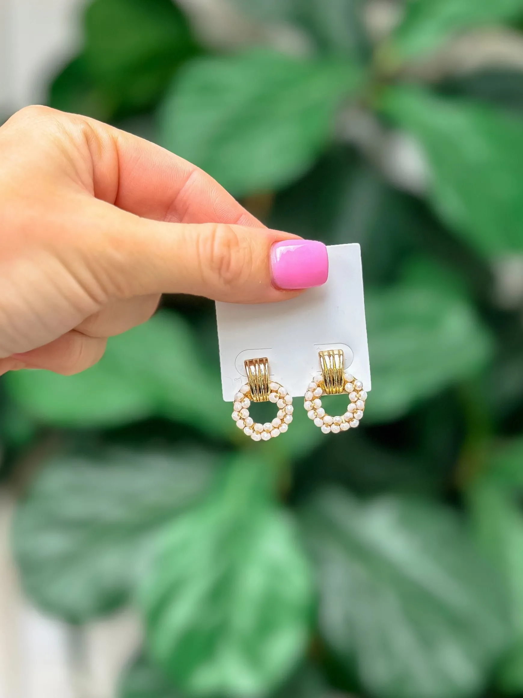 Add a touch of fun and elegance to your outfit with these petite ivory drop earrings. The simple beaded circle design exudes class while the unique shape adds a playful twist. Perfect for any occasion, these earrings are sure to make you stand out!