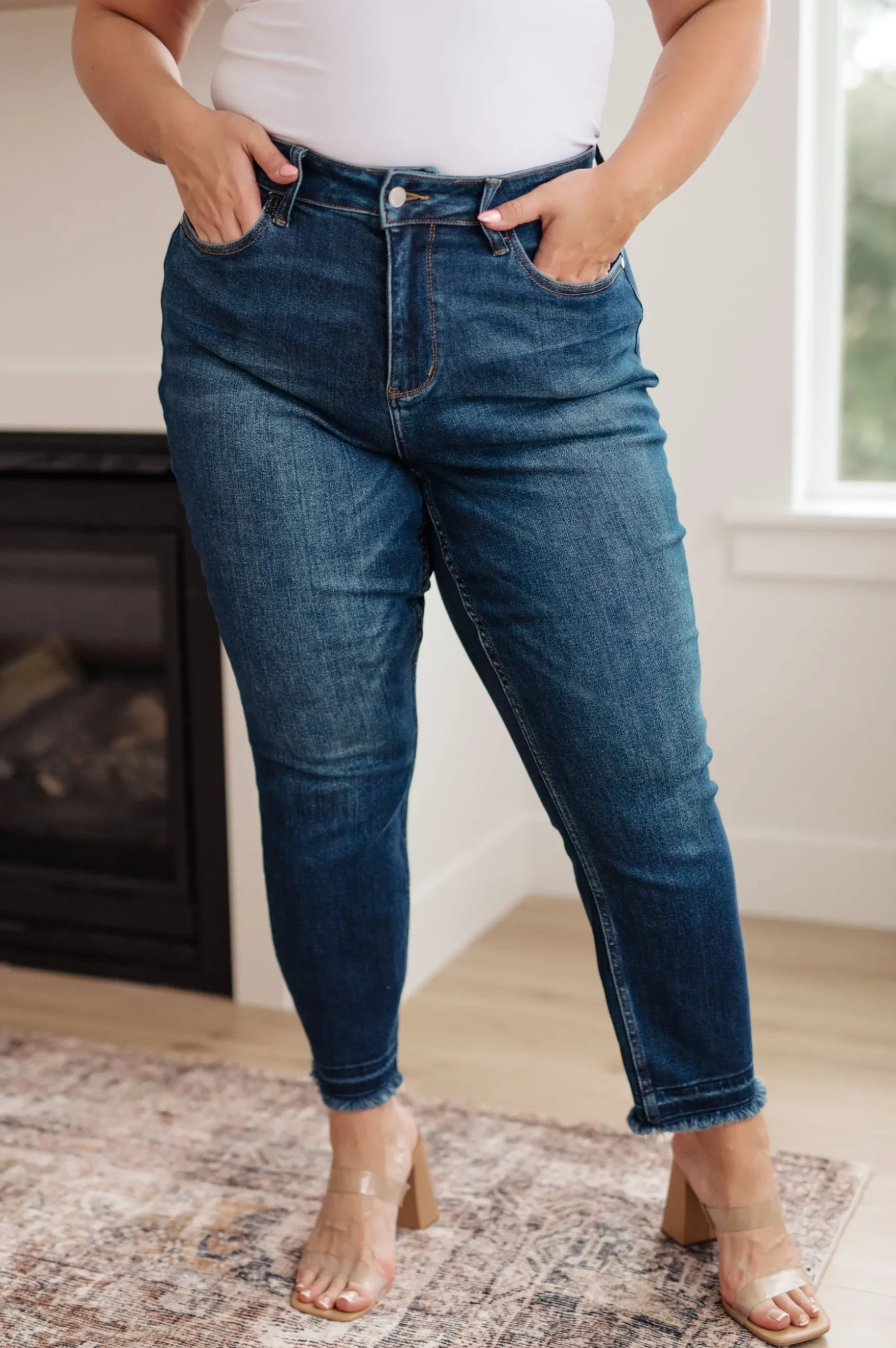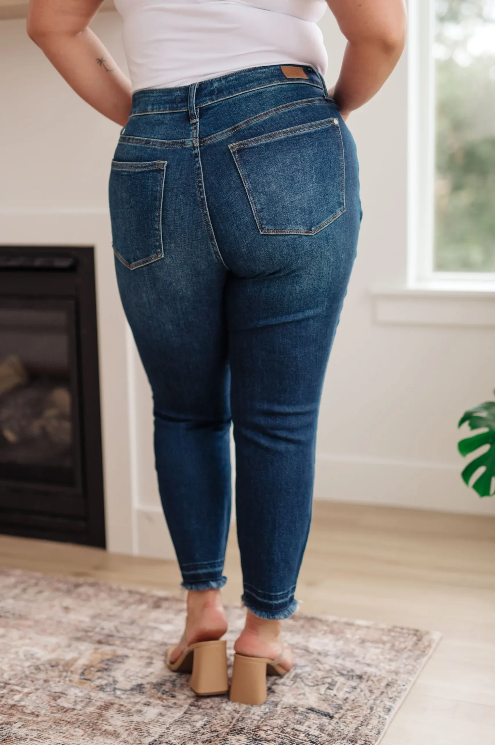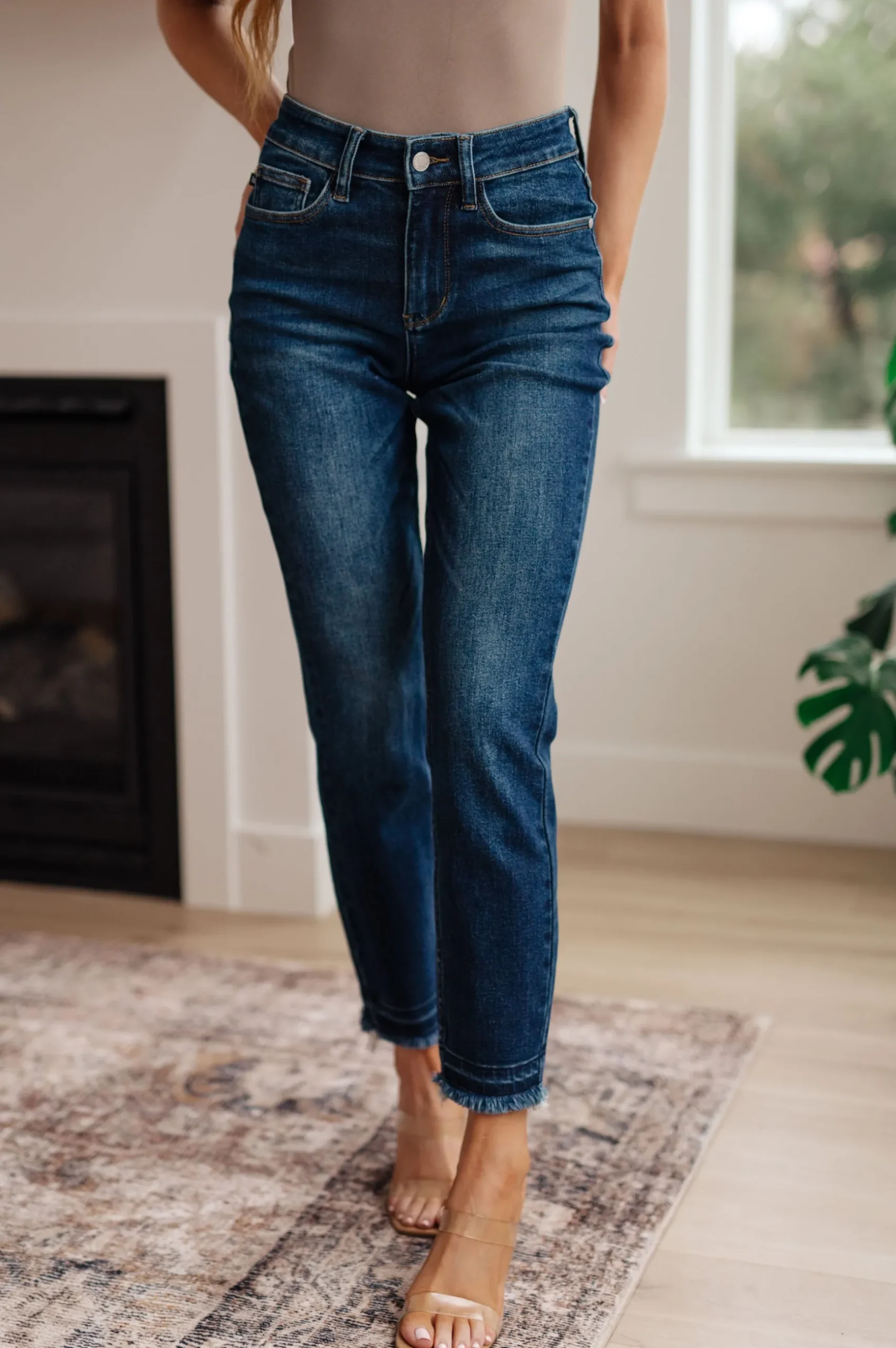 Introducing the Phillipa High Rise Release Hem Slim Jeans, the perfect combination of comfort and fashion. Featuring 4-way stretch for premium comfort and movement, plus a high rise and slim fit for an on-trend look. These jeans have a release hem and dark wash for a polished finish. Be fashion-forward without compromising comfort.