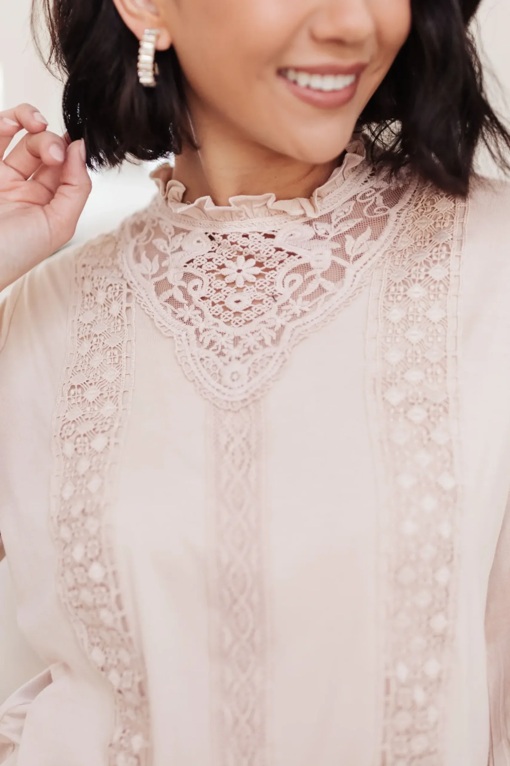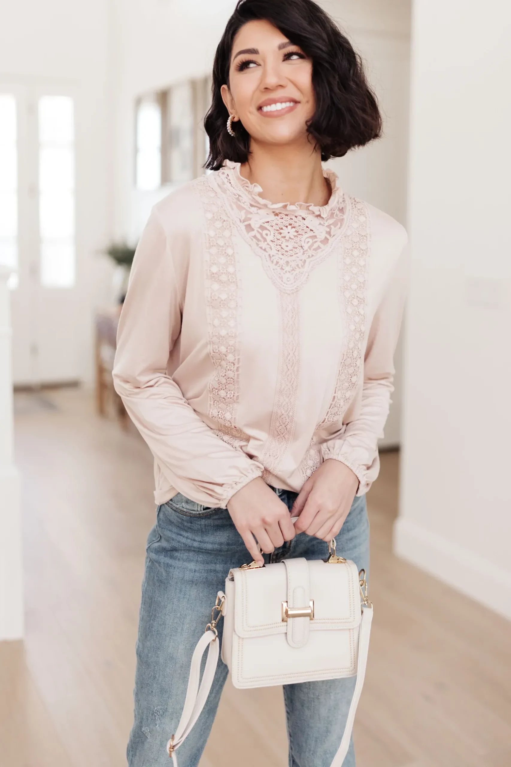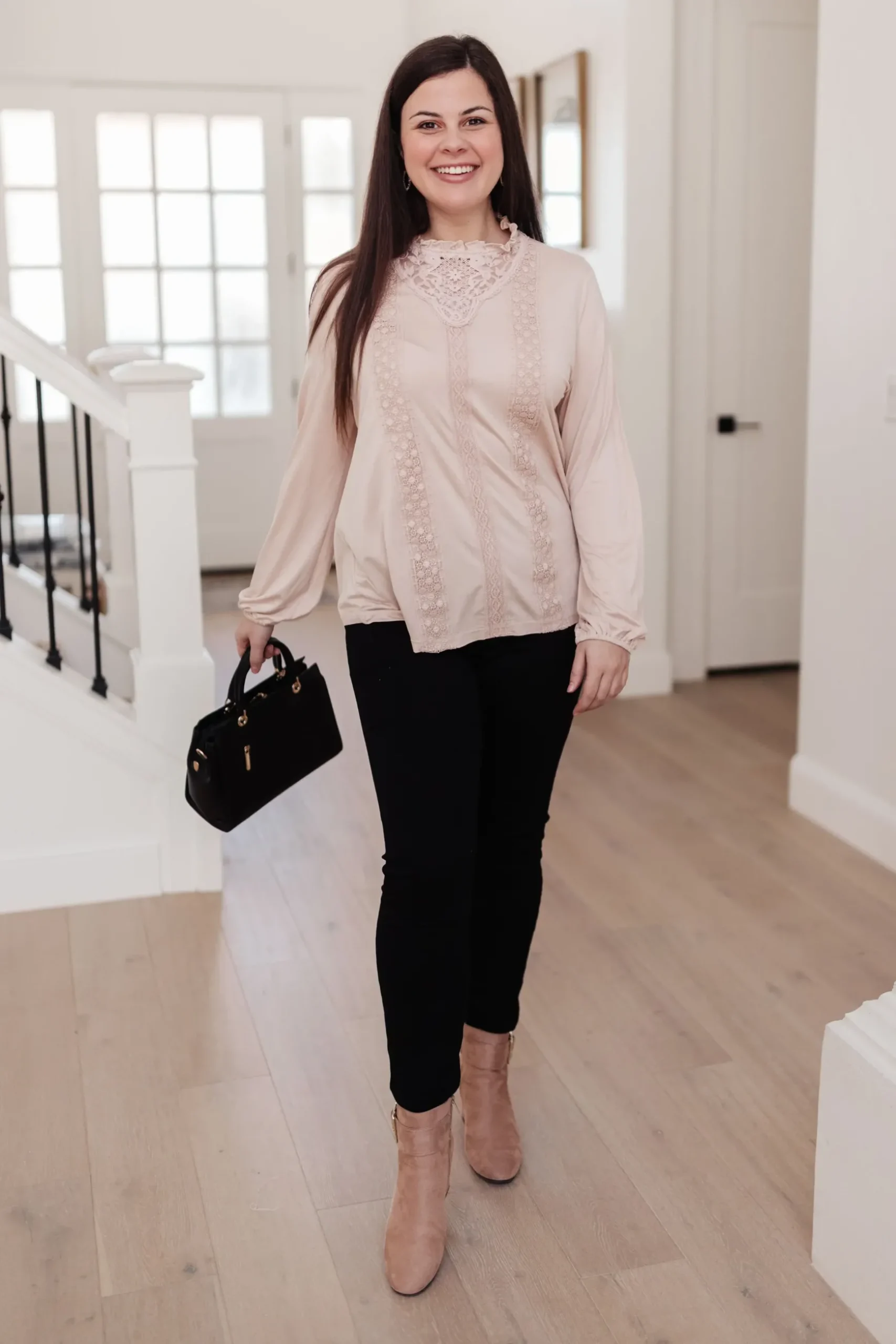Hello Cottage Core beauty! The Picture This Top is the missing piece your closet needs. It features a subtle mock neck displayed in ruffles creating a beautiful detail, while the bodice of the top features a lace and crochet overlay making this your new favorite going out top.