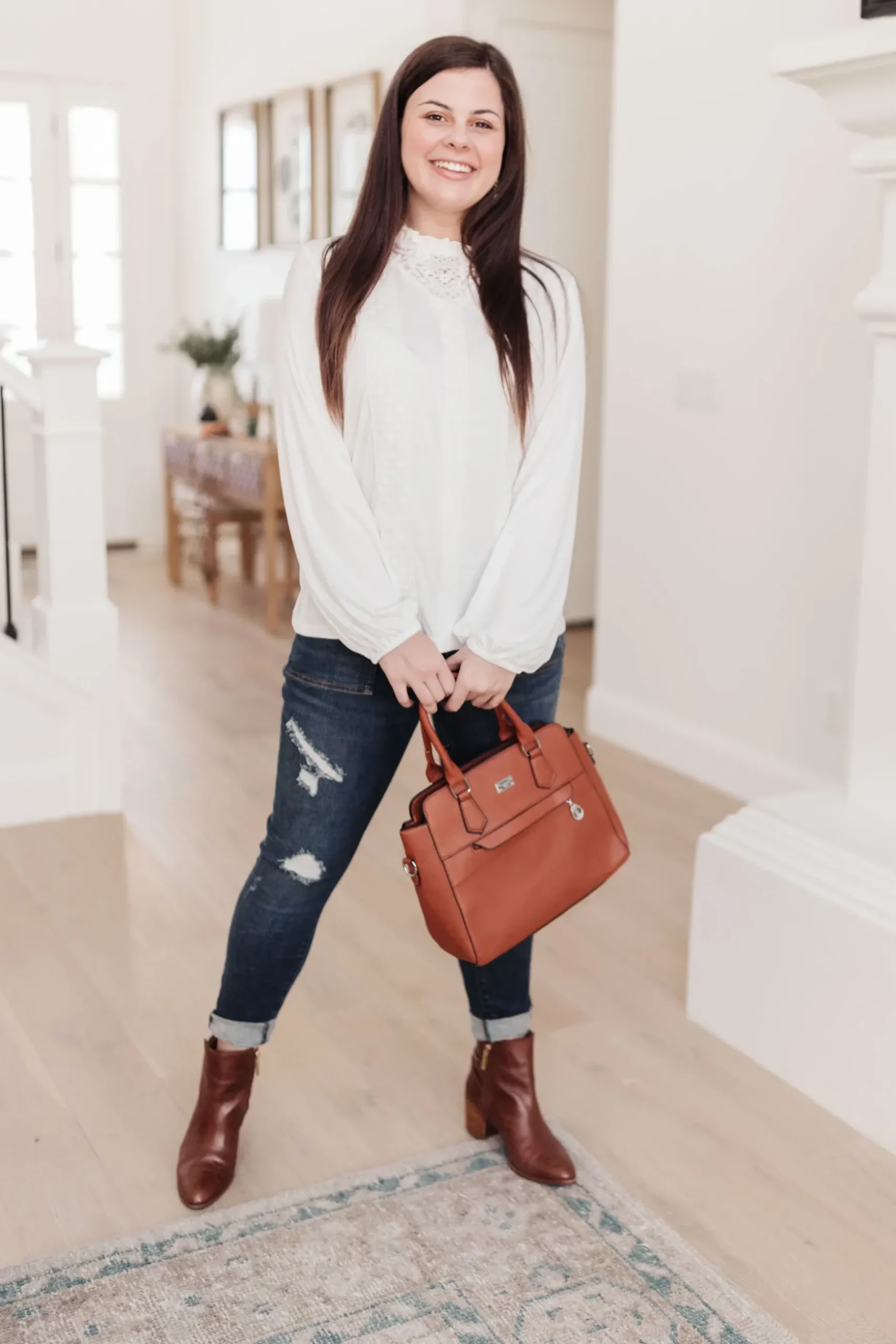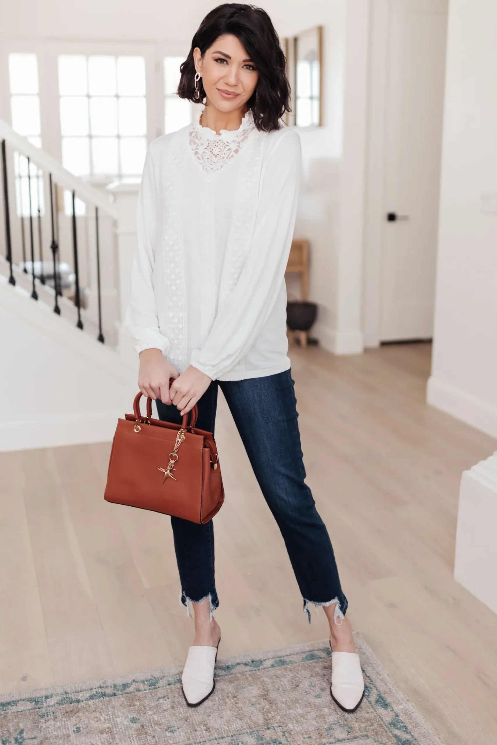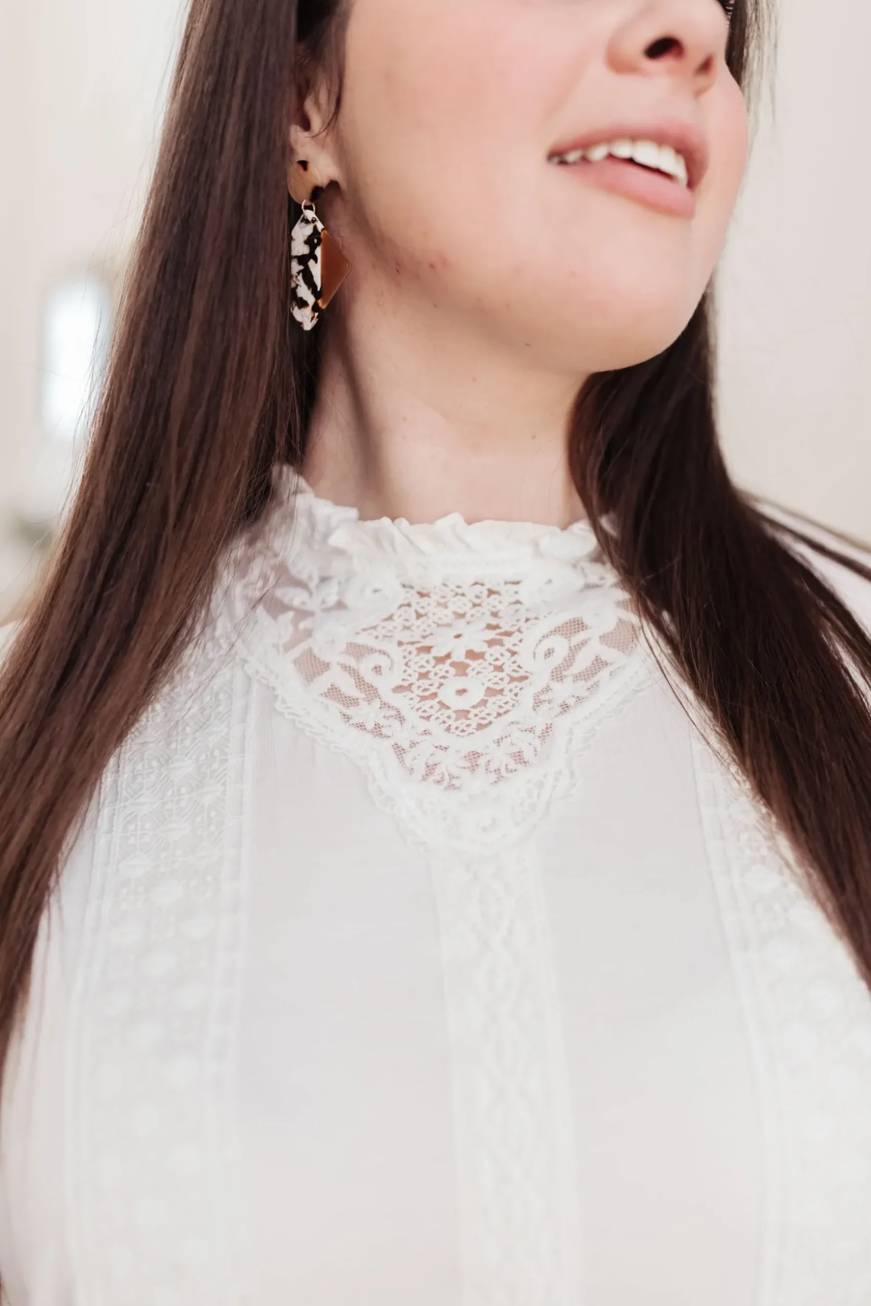 Hello Cottage Core beauty! The Picture This Top is the missing piece your closet needs. It features a subtle mock neck displayed in ruffles creating a beautiful detail, while the bodice of the top features a lace and crochet overlay making this your new favorite going out top.