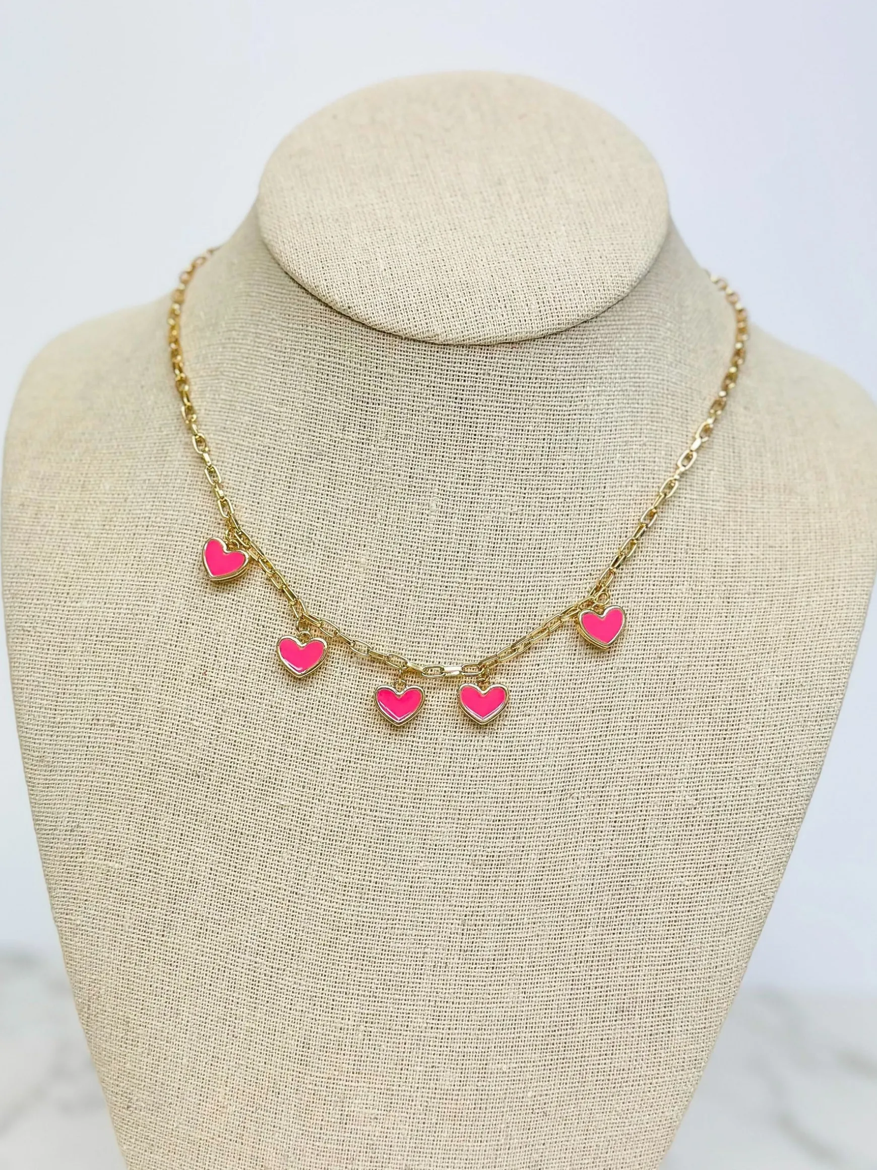 Pink Heart Enamel Dangle Necklace