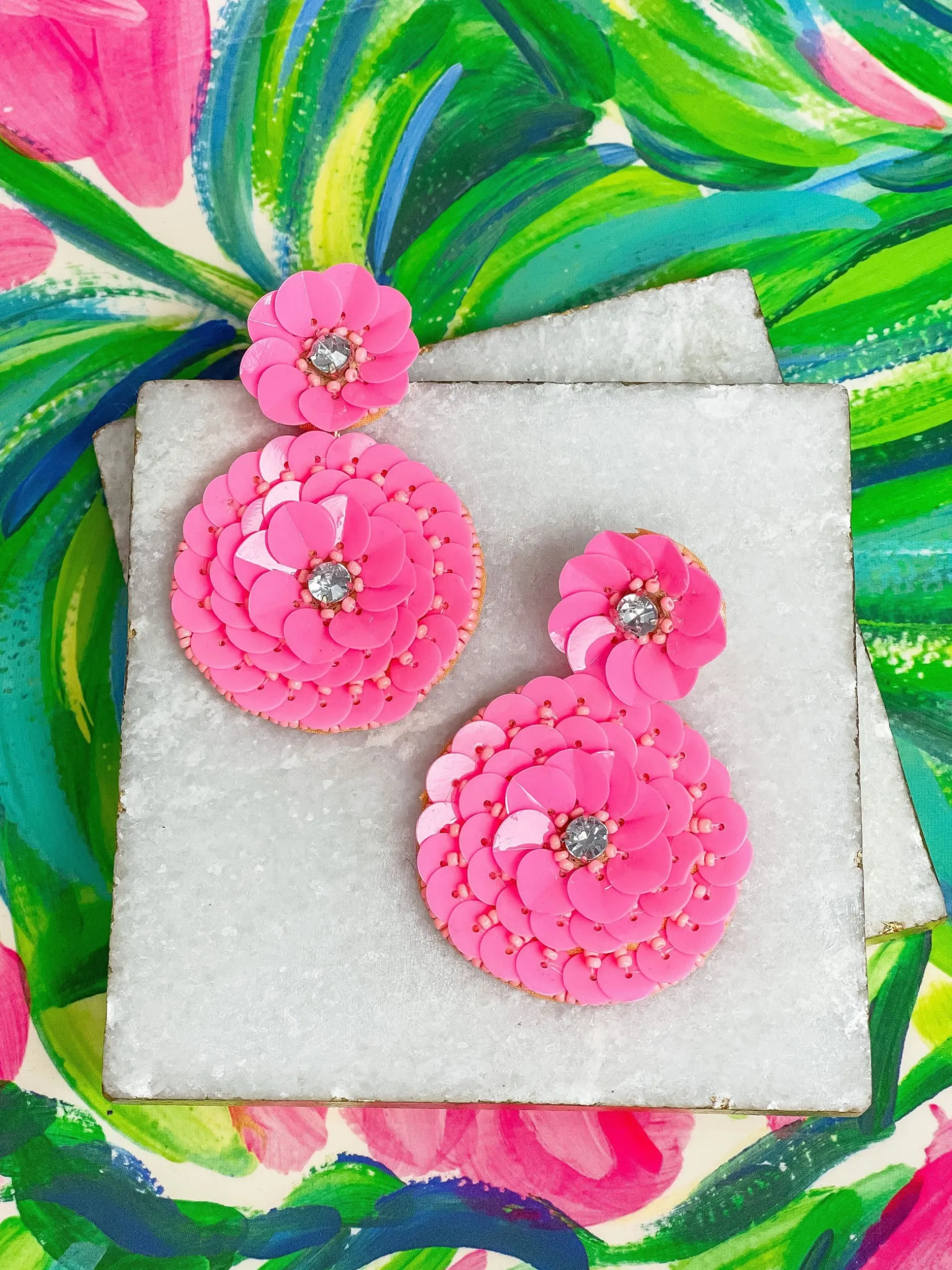 Be the first to review “Pink Sequin Flower Drop Earrings” Cancel reply