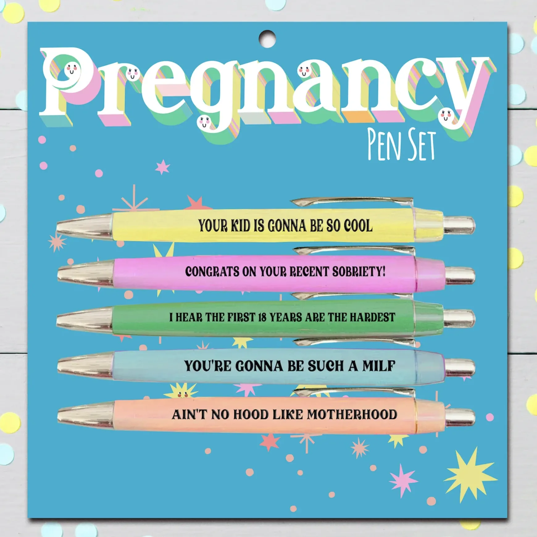 - Pens read: YOUR KID IS GONNA BE SO COOL; CONGRATS ON YOUR RECENT SOBRIETY; I HEAR THE FIRST 18 YEARS ARE THE HARDEST; YOU’RE GONNA BE SUCH A MILF; AIN’T NO HOOD LIKE MOTHERHOOD