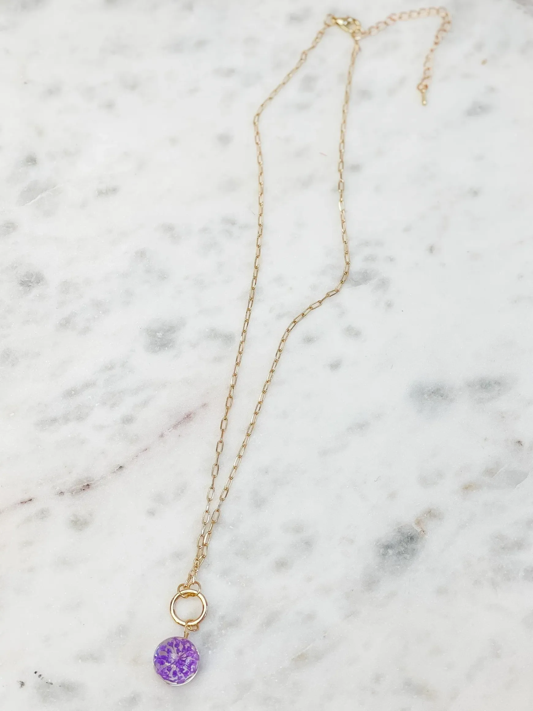 Pressed Flower Pendant Necklace – Purple