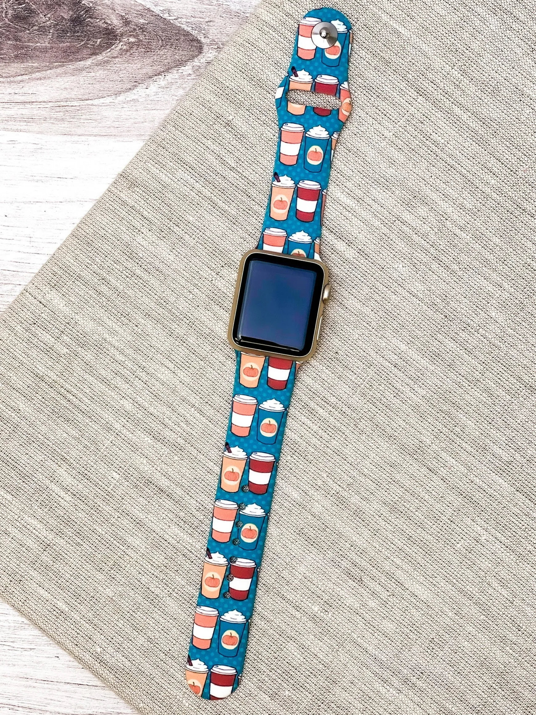 Pumpkin Latte Printed Silicone Smart Watch Band – Teal