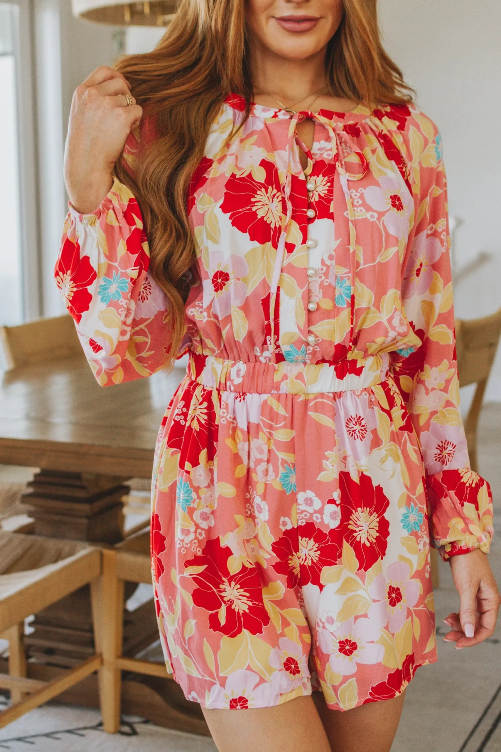 This Rare Beauty Floral Romper is the perfect piece for a fun day out. With its classic button front, comfy elastic waistband, and statement balloon sleeves, you’ll look gorgeous – and feel incredible – all day long. Step out with confidence and style in this lively statement floral print. What a rare beauty!