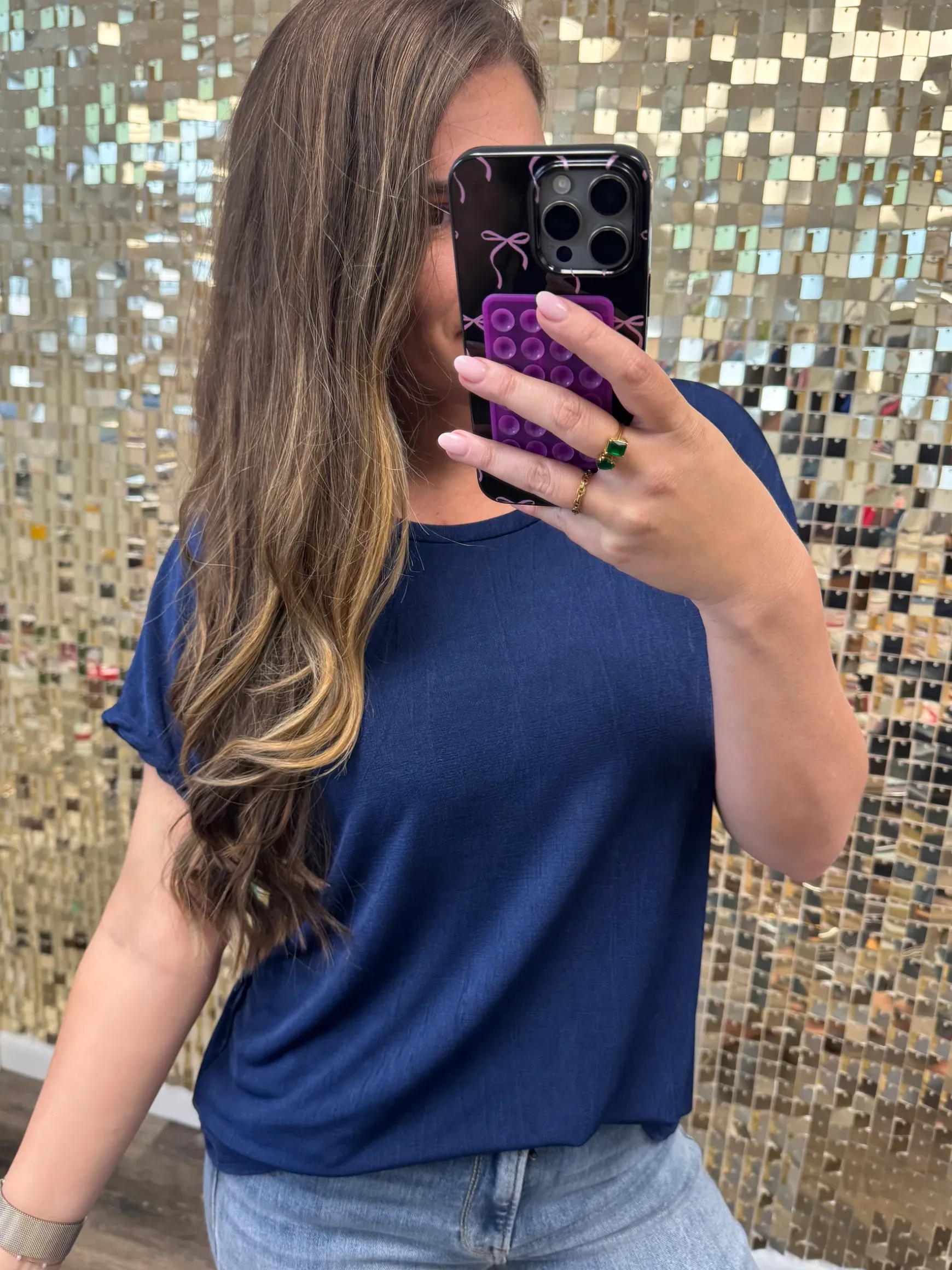 Relaxed Fit Round Neck Short Sleeve Top – Navy by Sew In Love