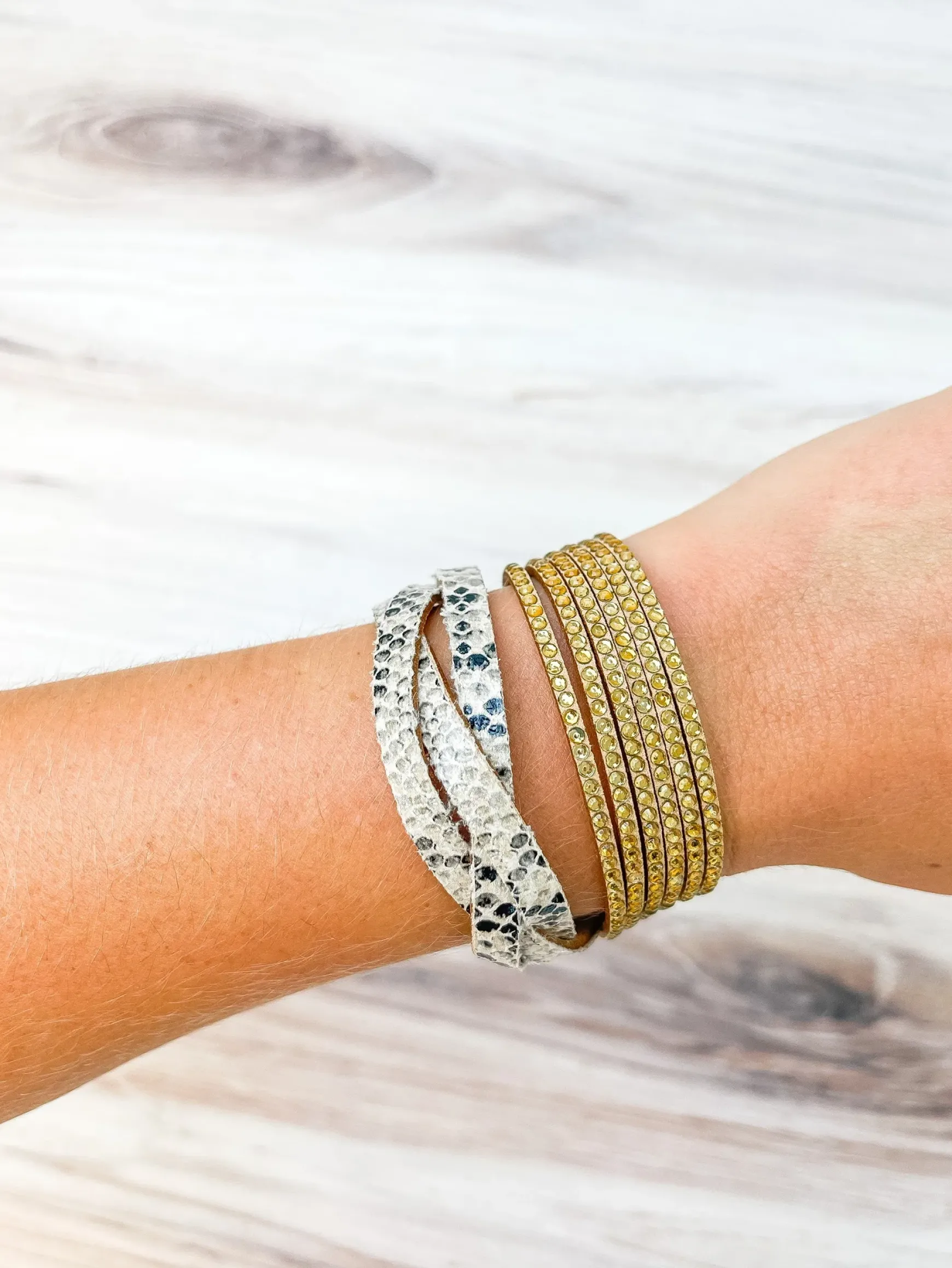 Rhinestone & Snake Wrap Bracelet complements any outfit and can allow you to go from desk to dinner in style.