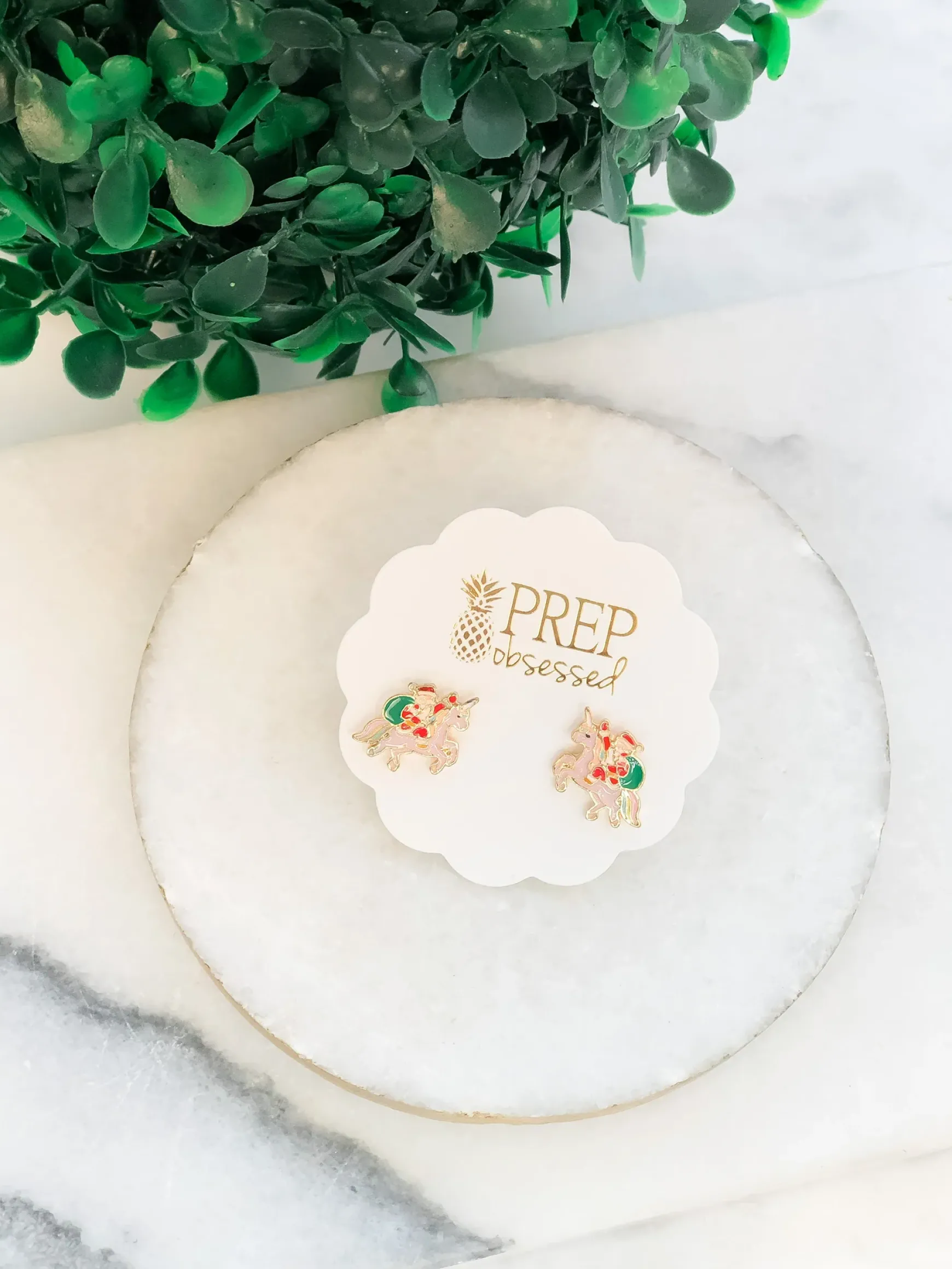 Be magical this holiday with the Santa unicorn studs!