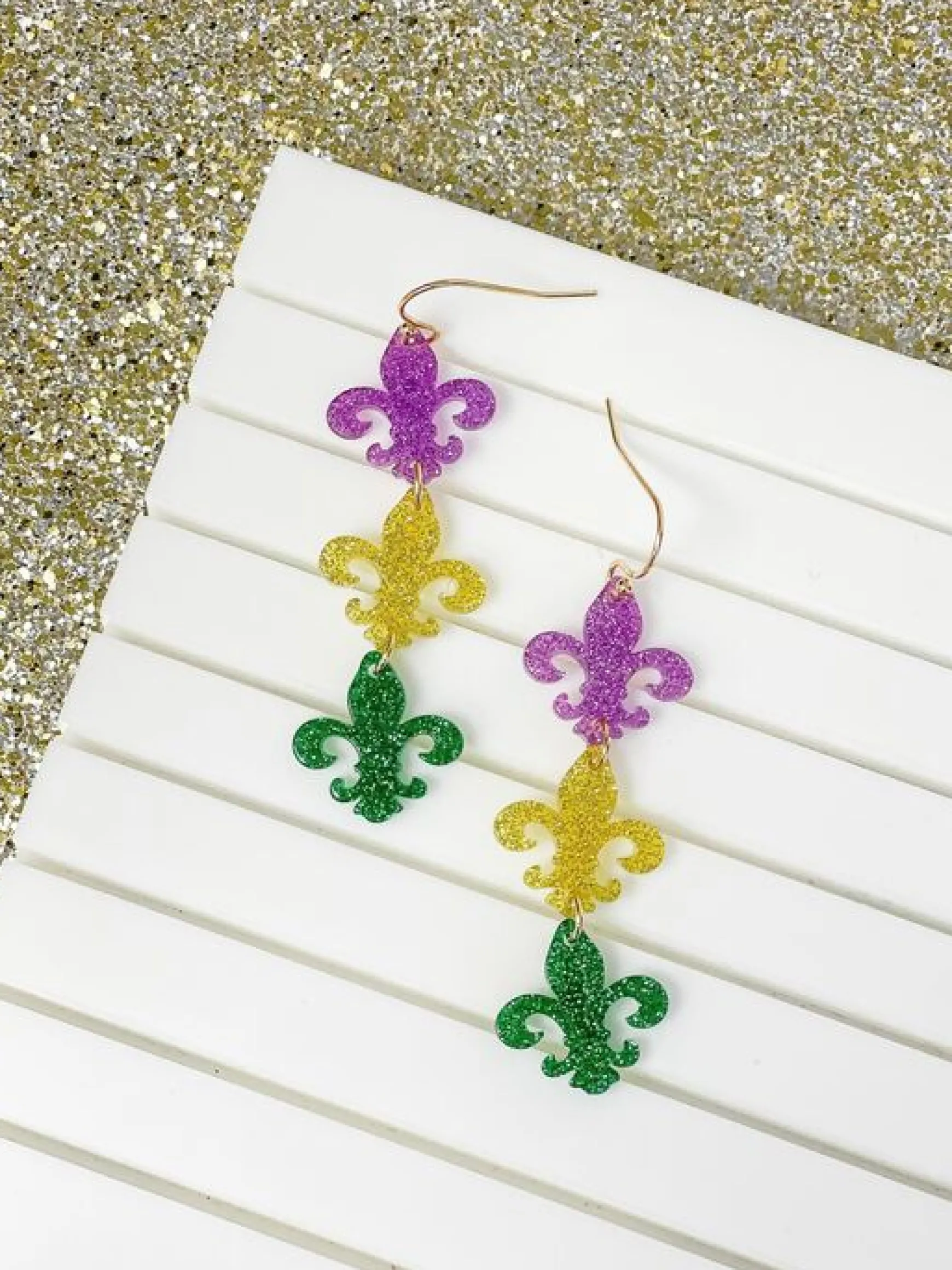 Shimmer Fleur De Lis Trio Dangle Earrings