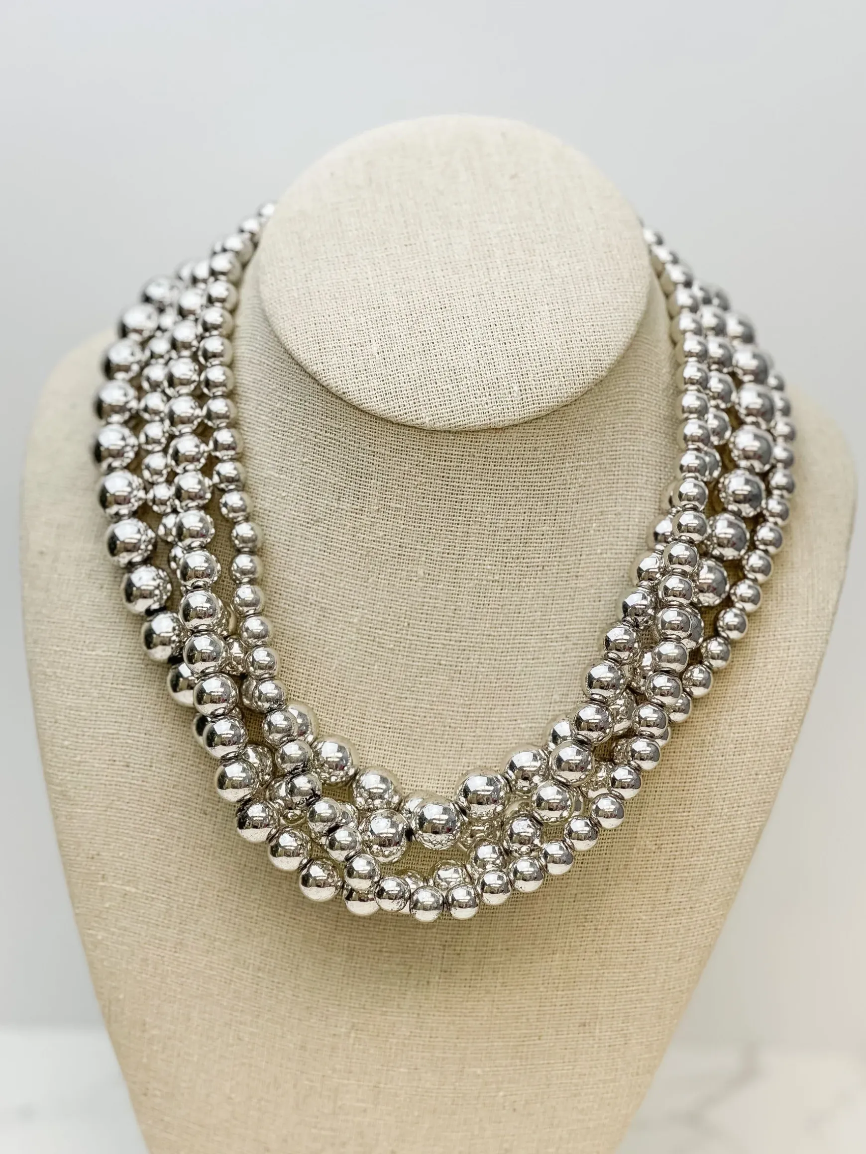 4 Individual Shiny Silver Beaded Strand Necklaces