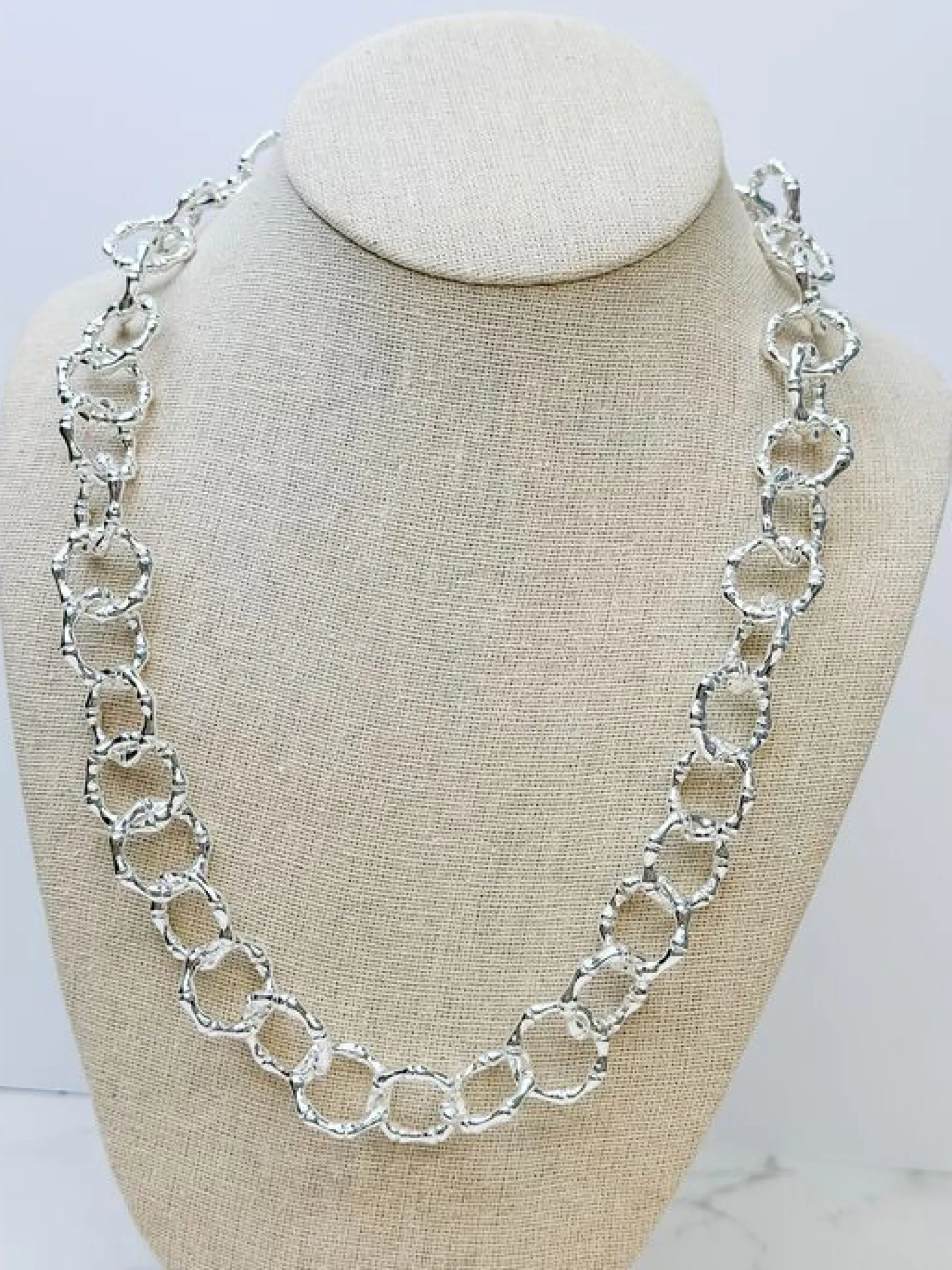 Crafted with a beautiful Silver hue, this bamboo link chain necklace adds a touch of shine to your style.