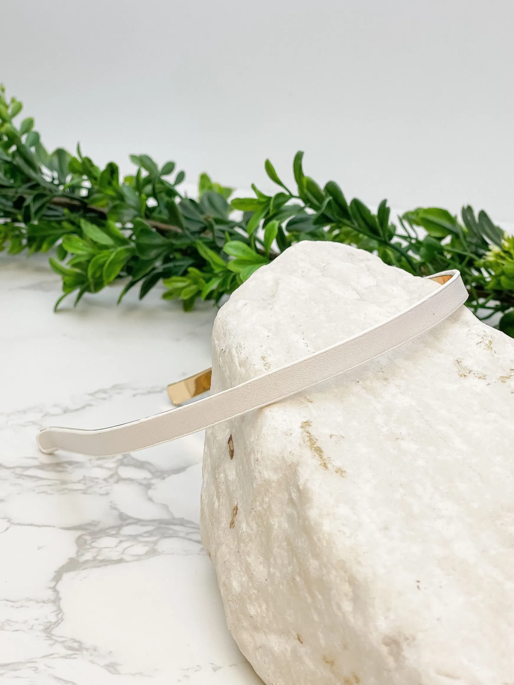 Be the first to review “Skinny Leather Headband – White” Cancel reply