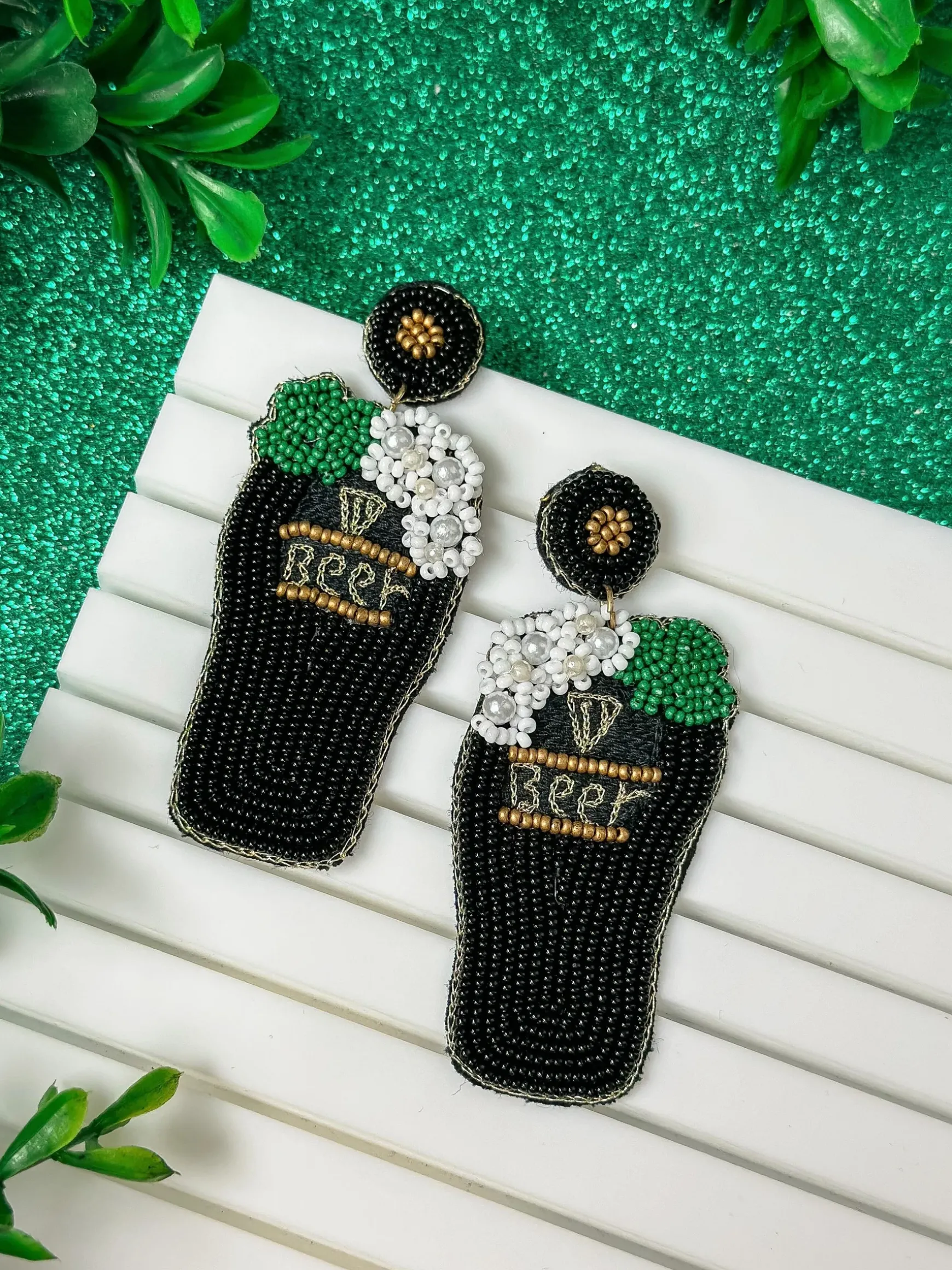 These St. Paddy’s Beer Beaded Dangle Earrings are the perfect accessory for any St. Patrick’s Day celebration.