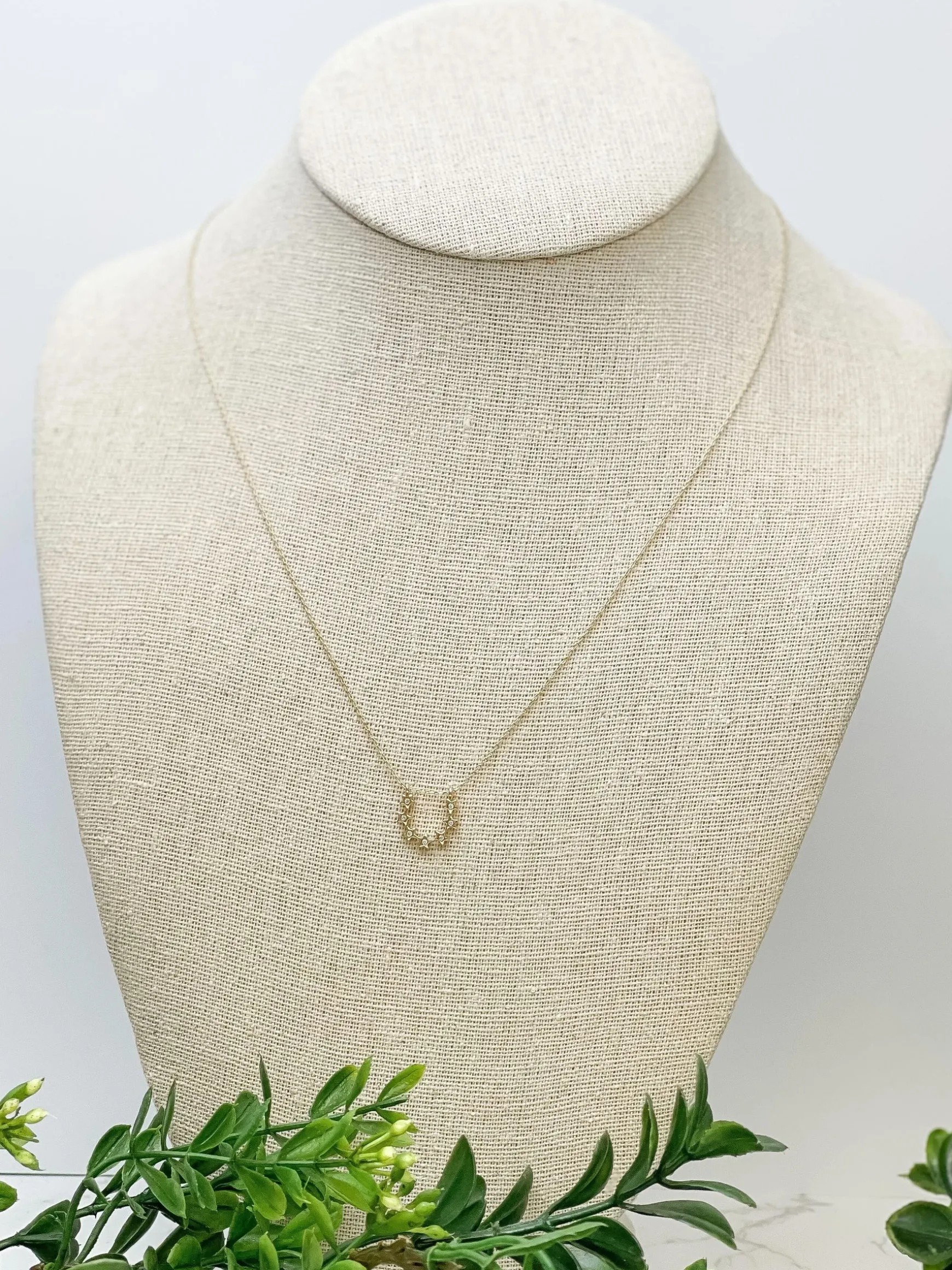 This elegant necklace features a stunning horseshoe pendant, representing luck and protection. Skillfully crafted, it exudes timeless beauty and charm. A perfect accessory for those seeking a touch of luck in their daily lives.