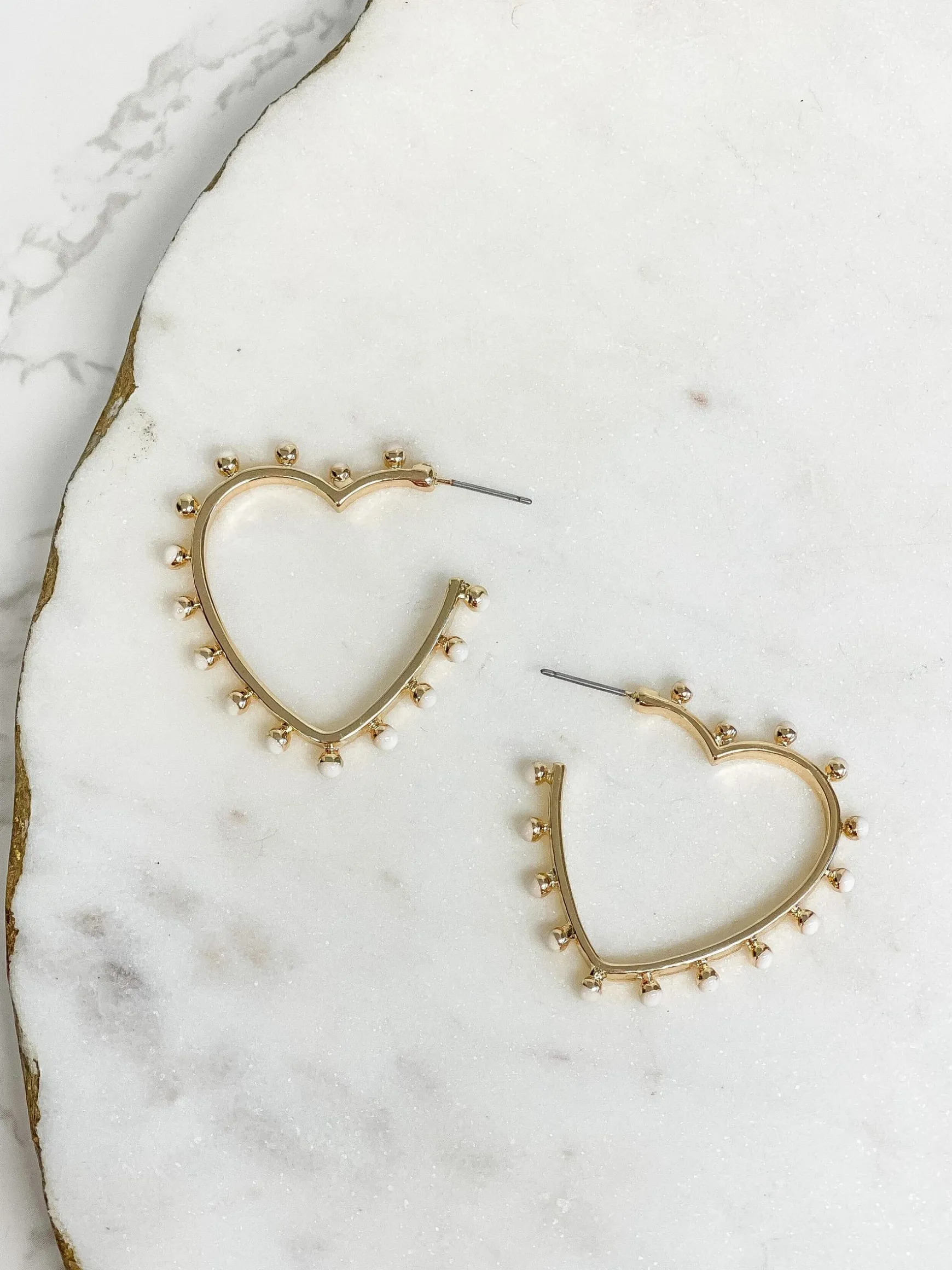 These Studded Gold Heart Hoop Earrings feature an elegant design with enamel studded hearts, perfect for adding a touch of glamour to any outfit.