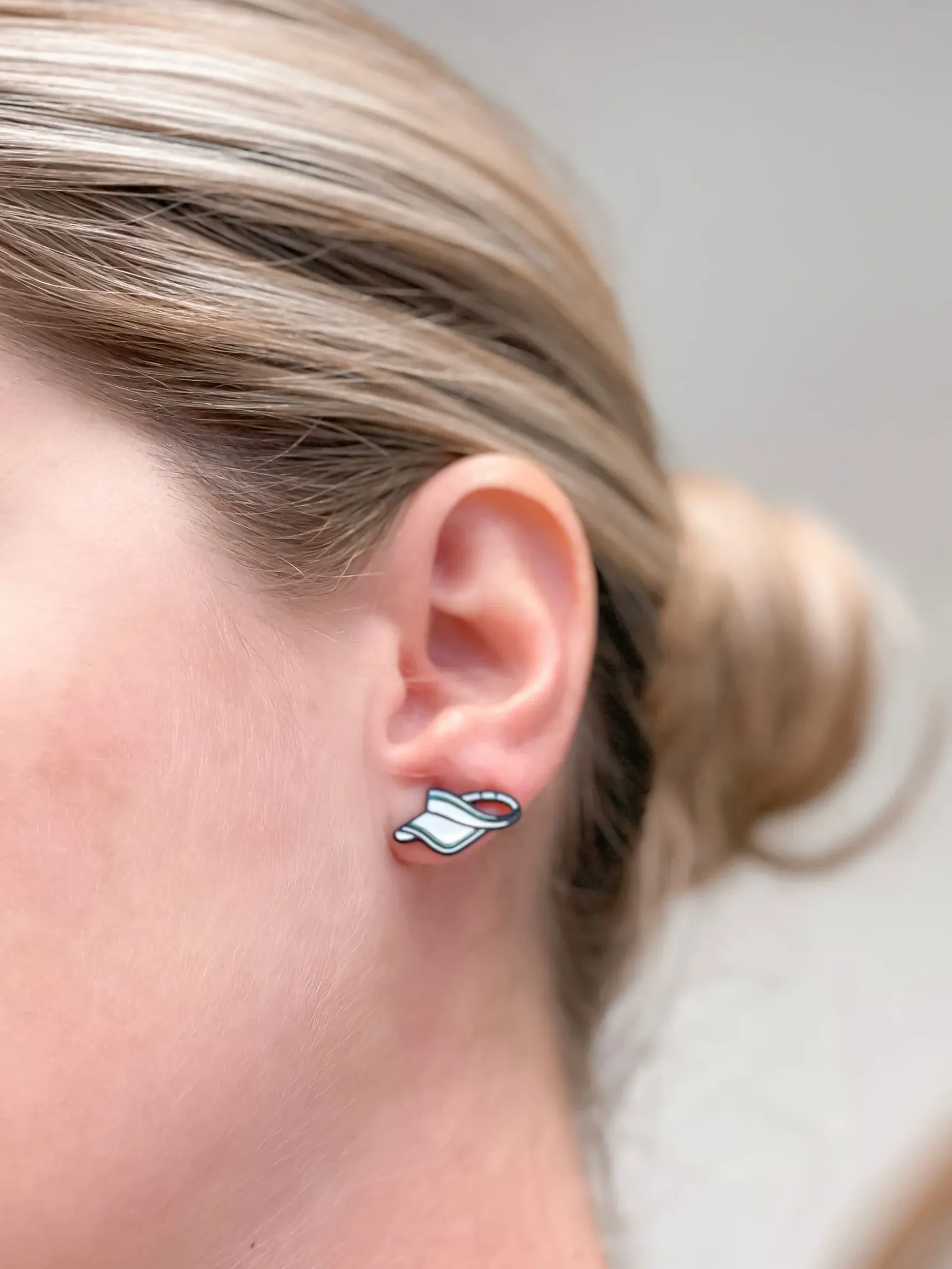 These Sun Visor Enamel Stud Earrings add a playful touch to any outfit with their fun summery design.