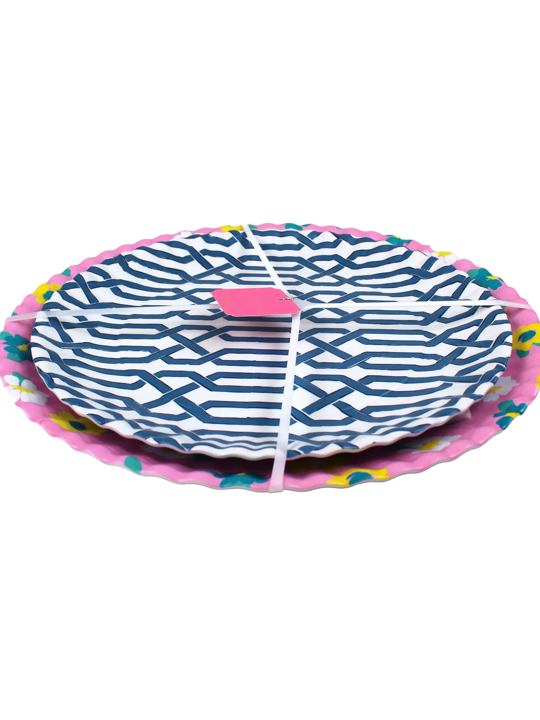 Gather around and serve your favorite meal with our patterned platters. Features fun and bright designs. Made of 100% melamine.