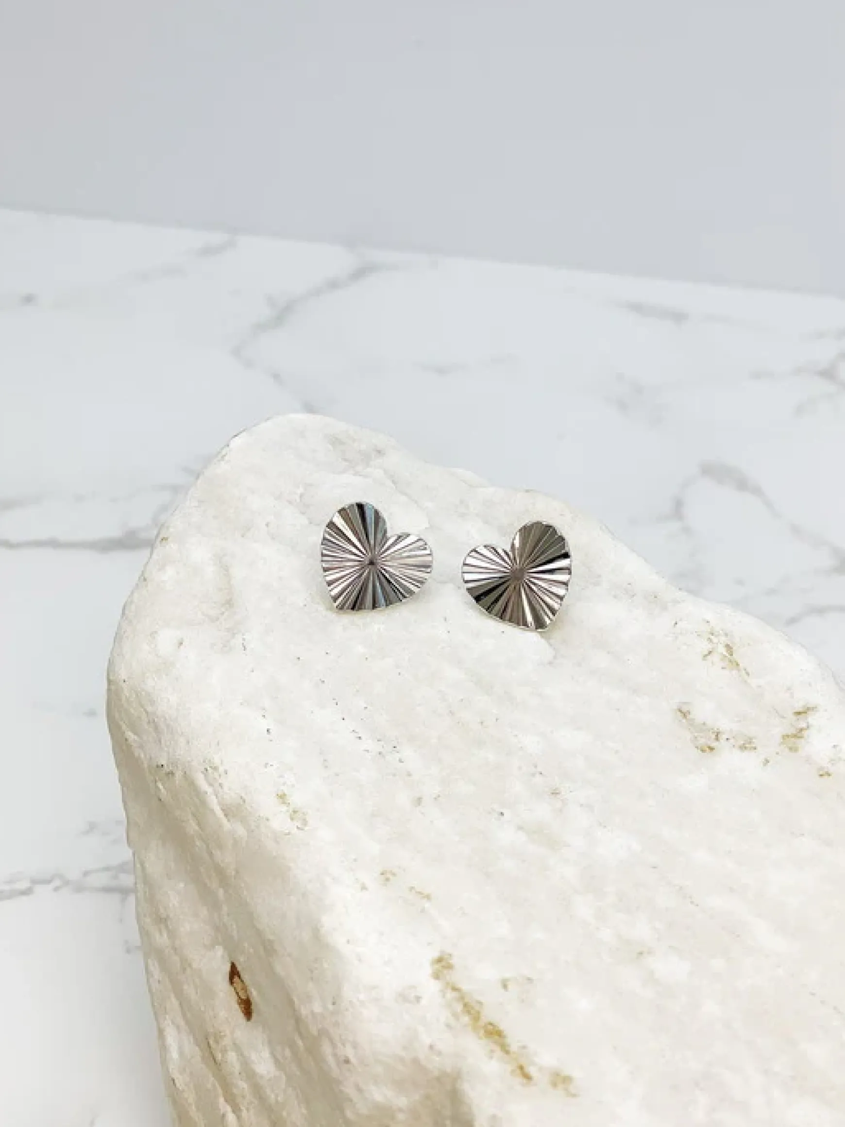 Textured Heart Stud Earrings – Silver