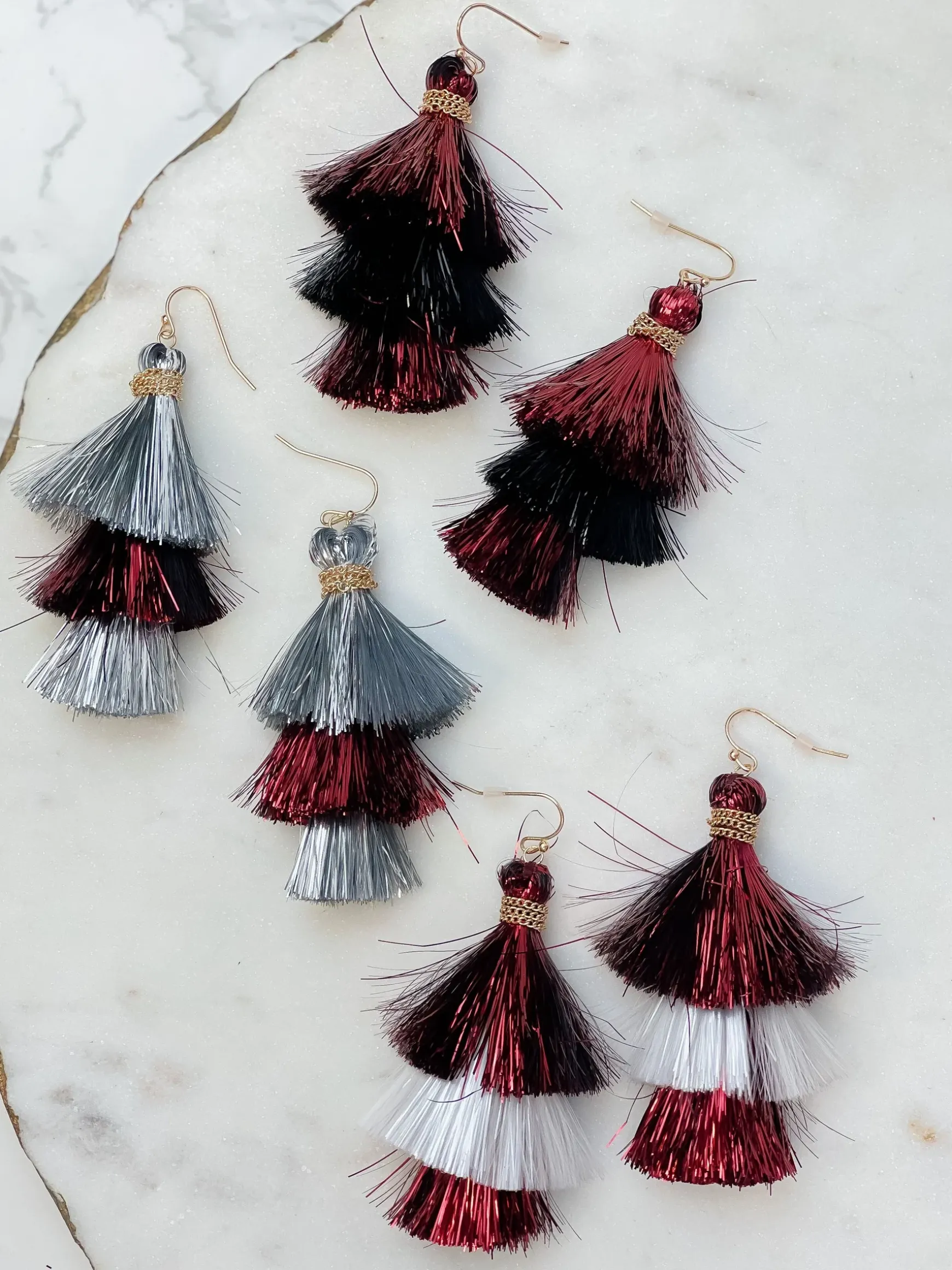 Tinsel Tiered Tassel Earrings – Red & Black