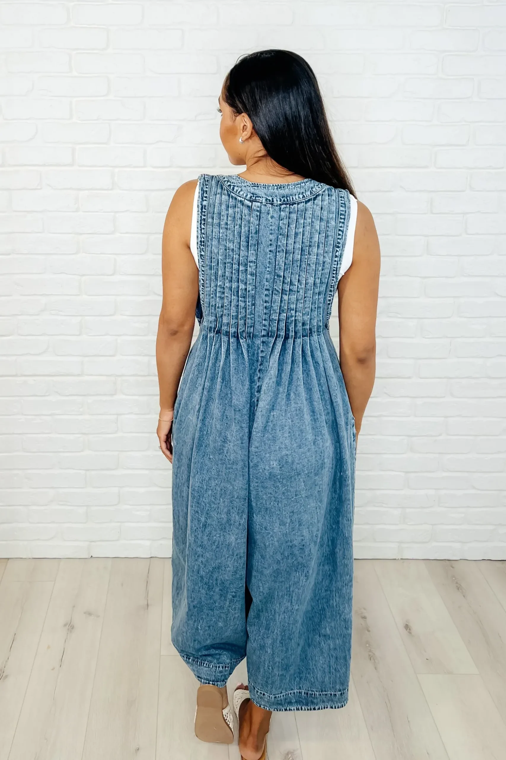 The Too Cool For Fools Wide Leg Jumpsuit is denim done right. Featuring a banded V-neck and chic pleat details, this jumpsuit serves up effortless style with a touch of edge. The functional neckline tie and blue side zipper add both form and function, while the barrel leg silhouette gives it a modern, laid-back vibe. Plus, with handy side pockets, you’ve got both style and convenience covered. Cool, confident, and undeniably chic — this jumpsuit is a total power move.