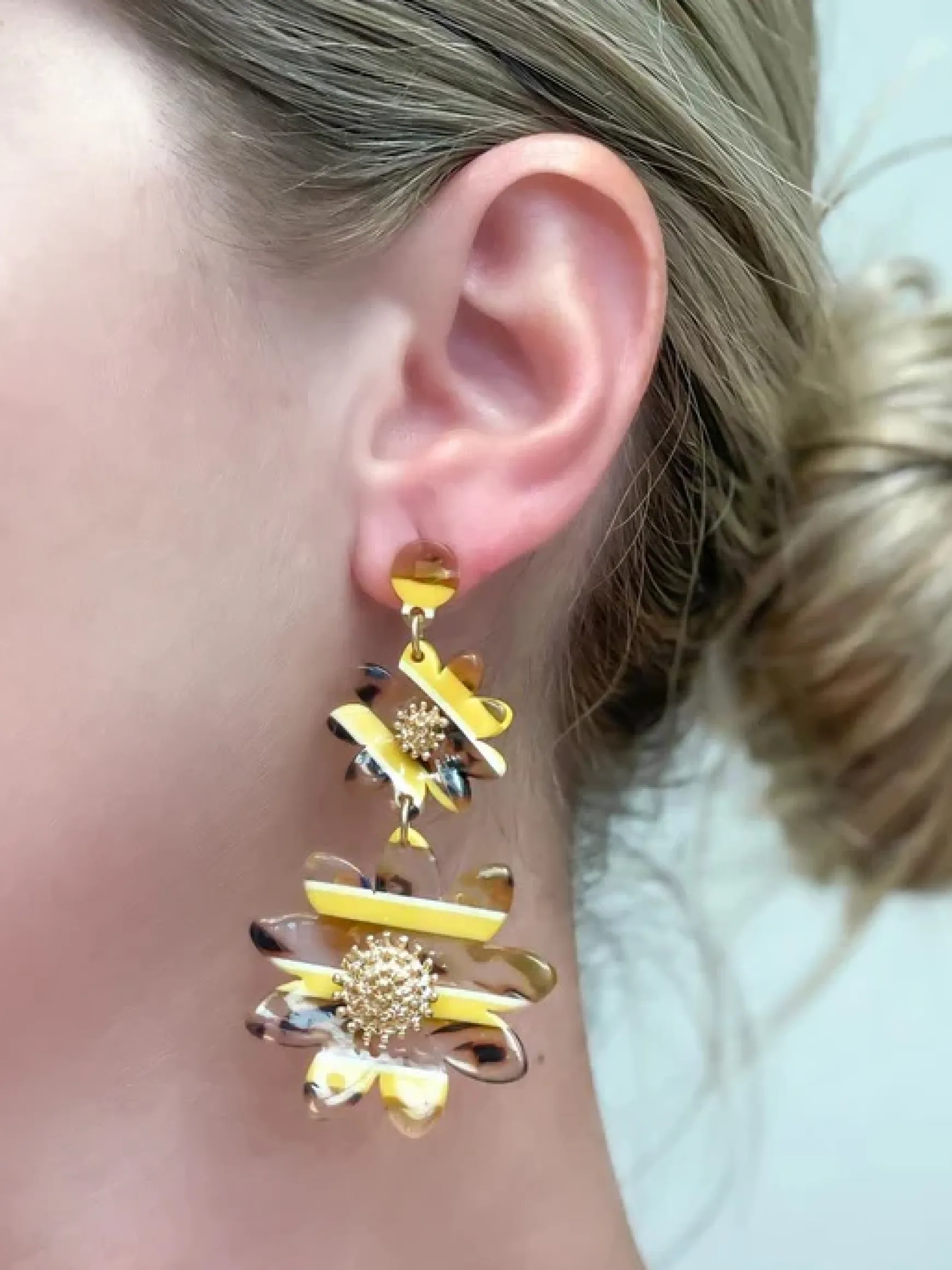 These elegant Tortoise Sunflower Dangle Earrings feature a classic dangle design, adding a touch of sophistication to any outfit. Perfect for any occasion, these earrings are a must-have accessory for any fashion-forward individual. Elevate your style with these timeless and versatile earrings.