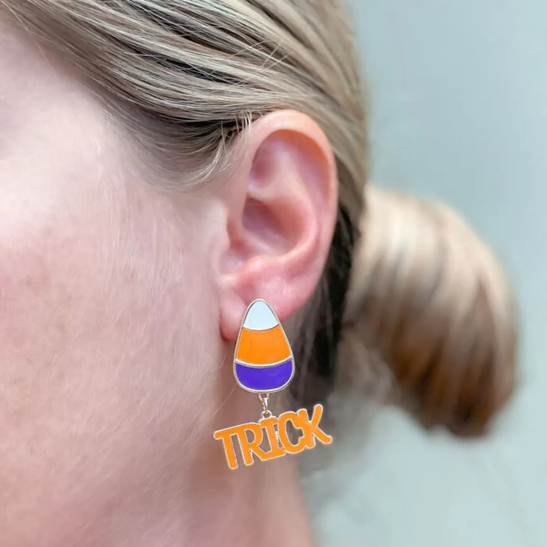 These ‘Trick or Treat’ Dangle Ghost Enamel Earrings are the perfect addition to your Halloween celebration. Crafted from enamel, these earrings are designed with fun, spooky details that’ll give your style a touch of whimsy.