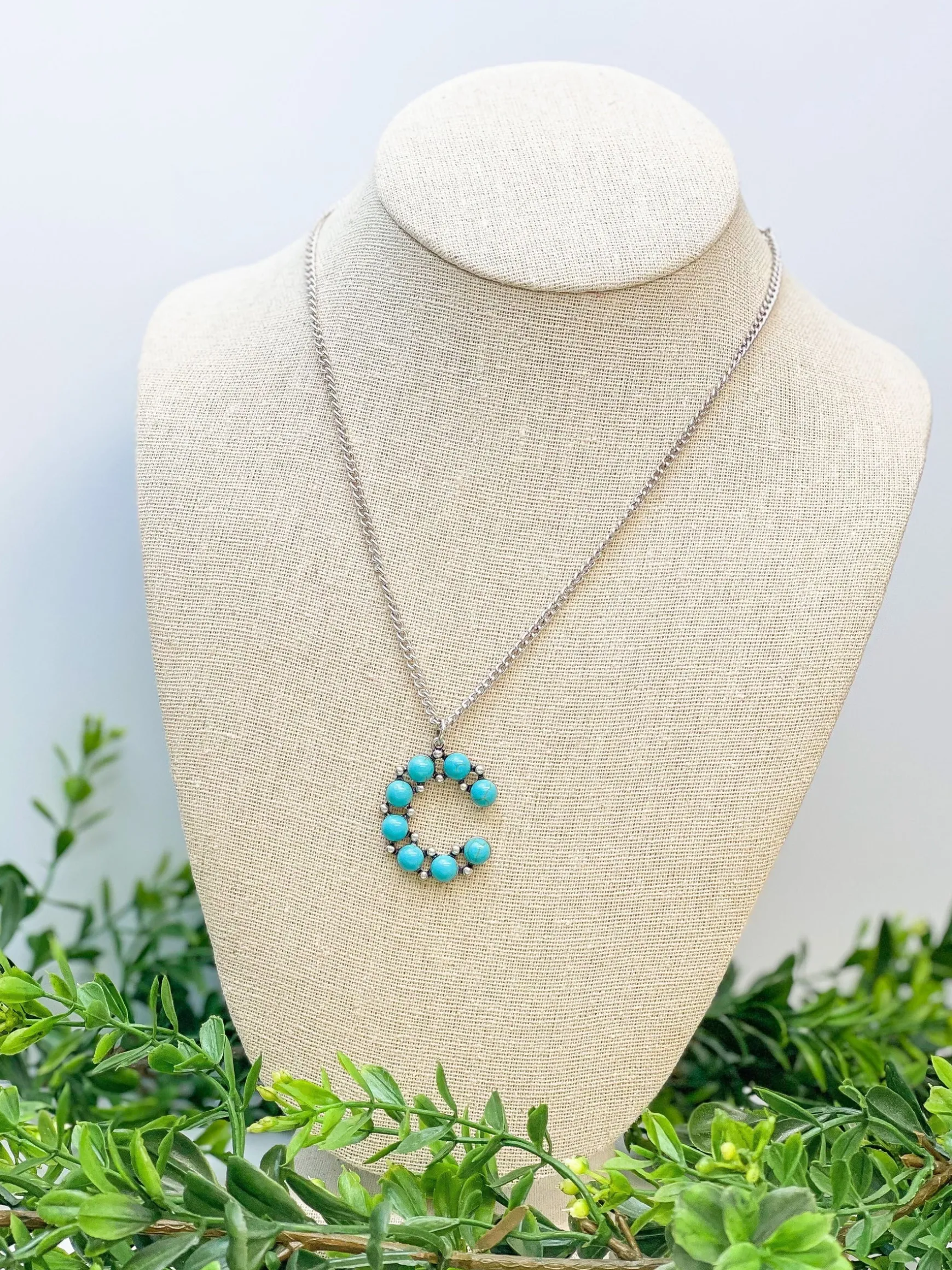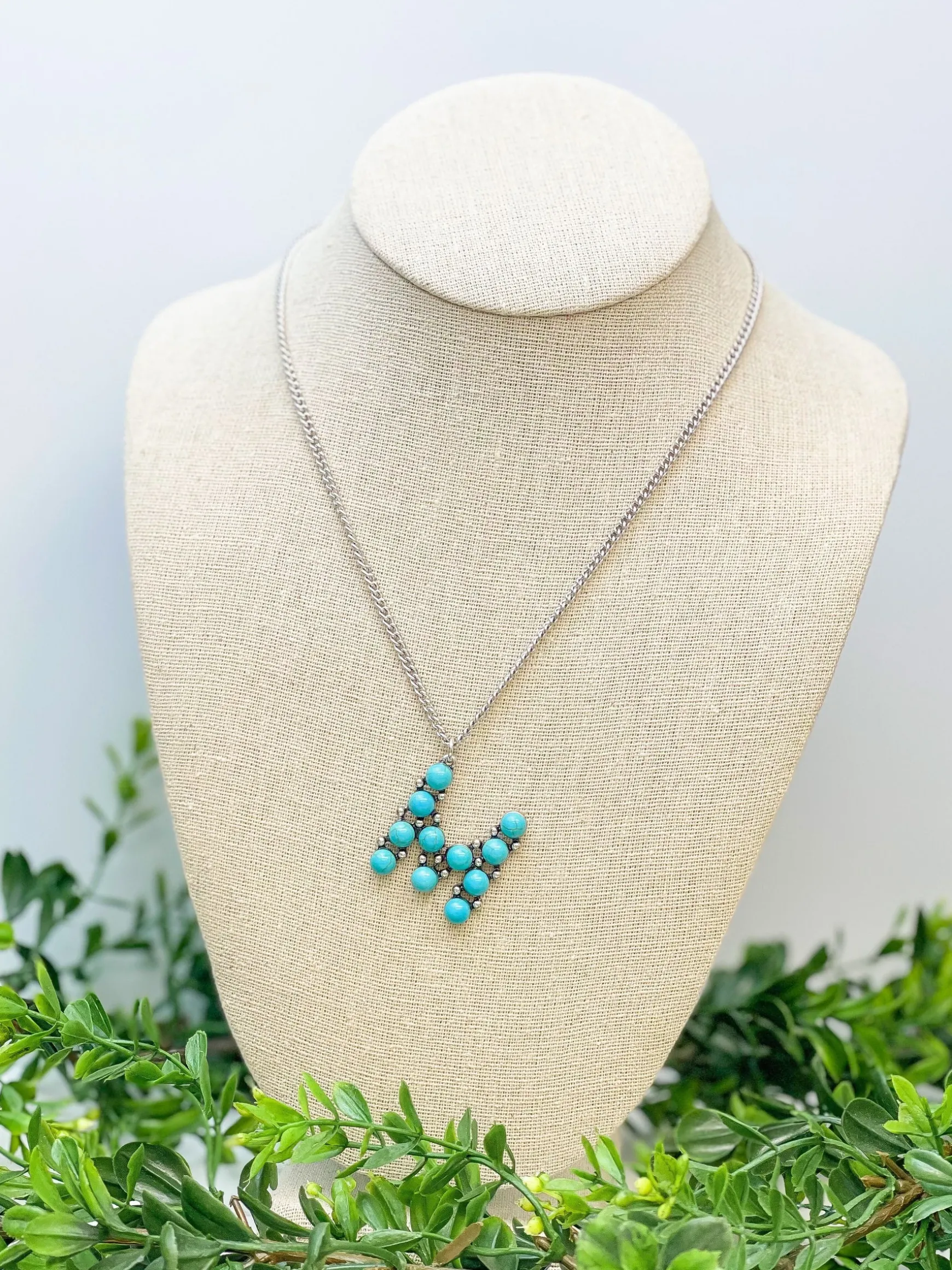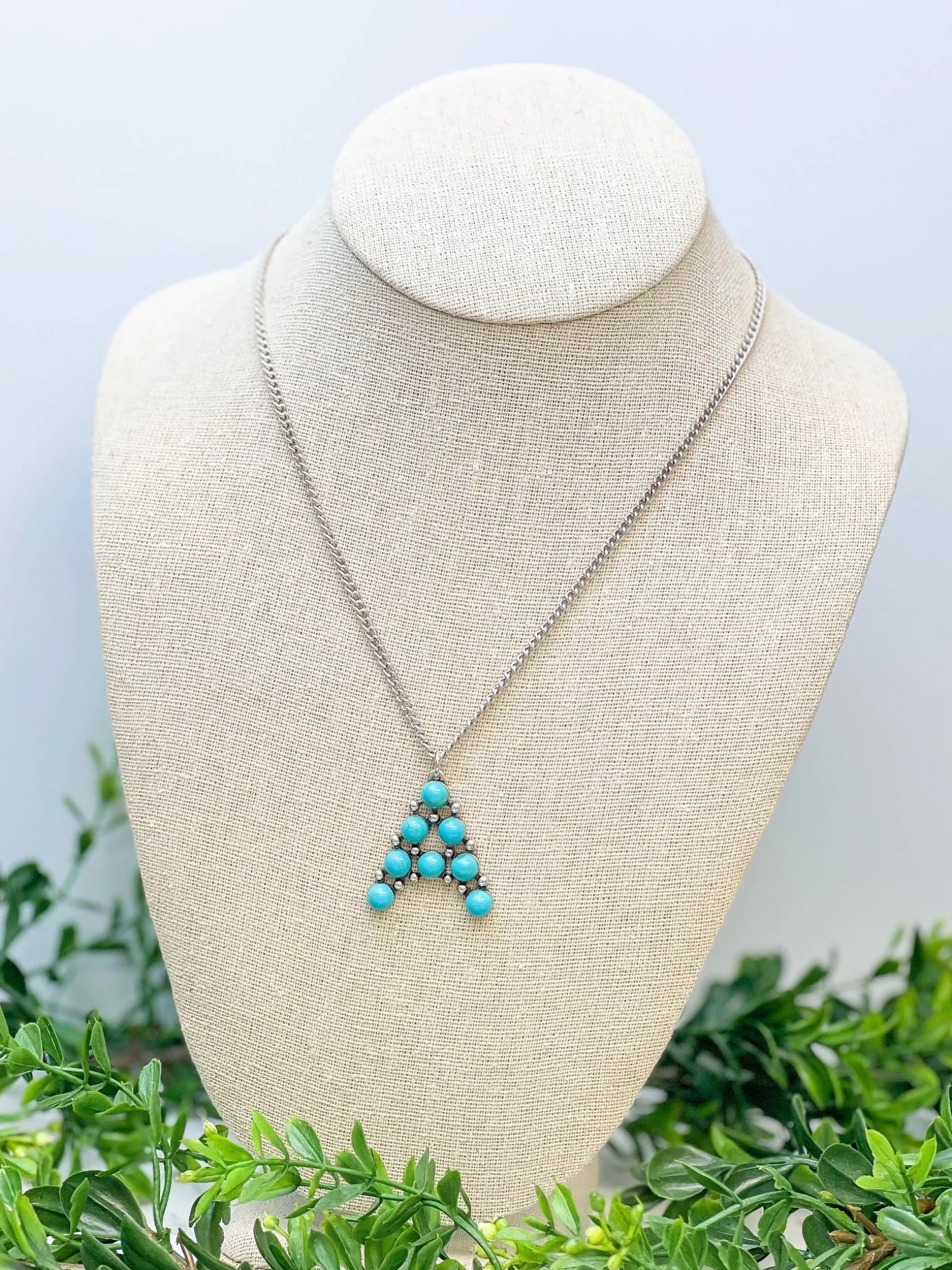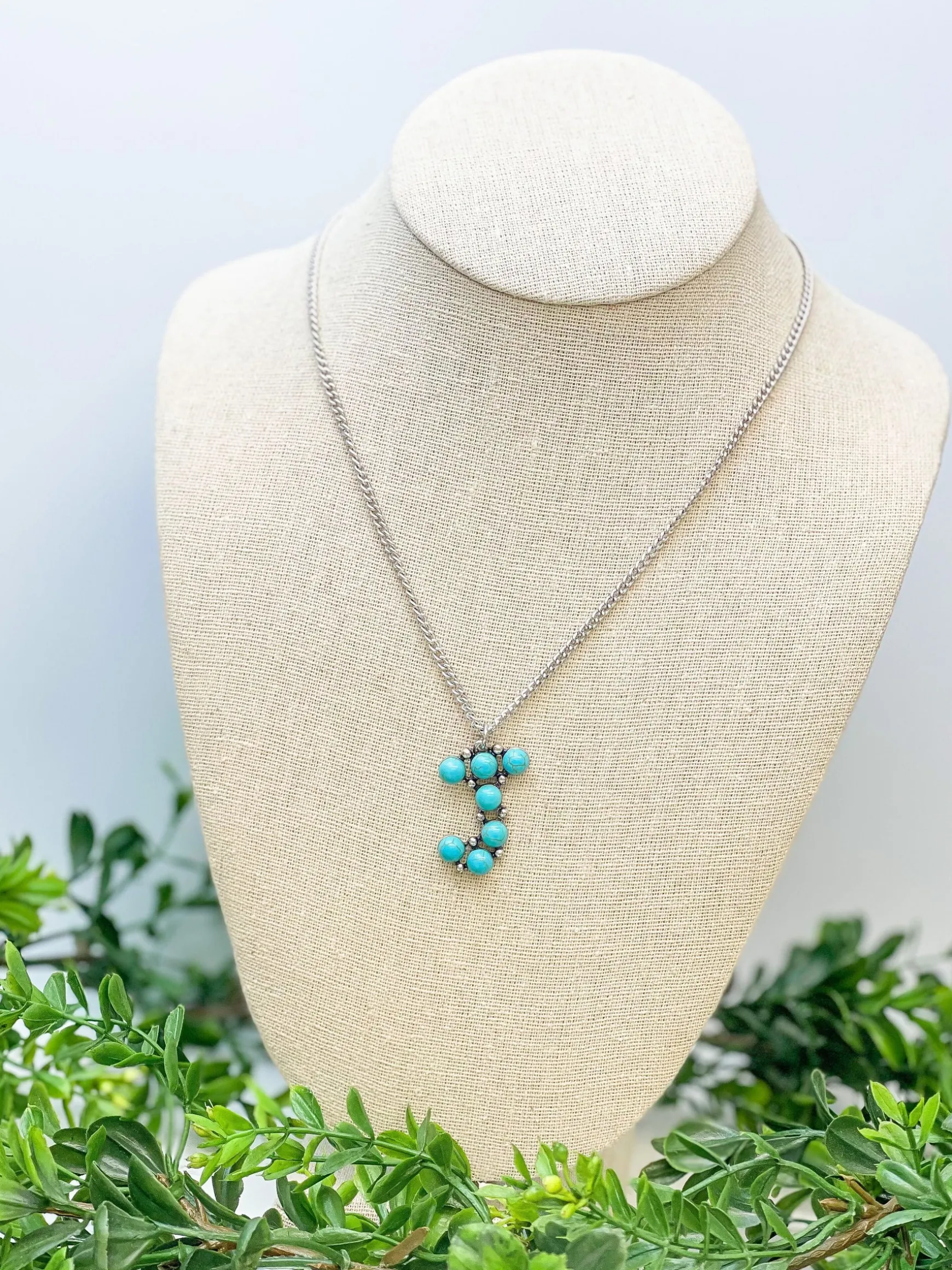 Turquoise Semi-Precious Initial Pendant Necklaces