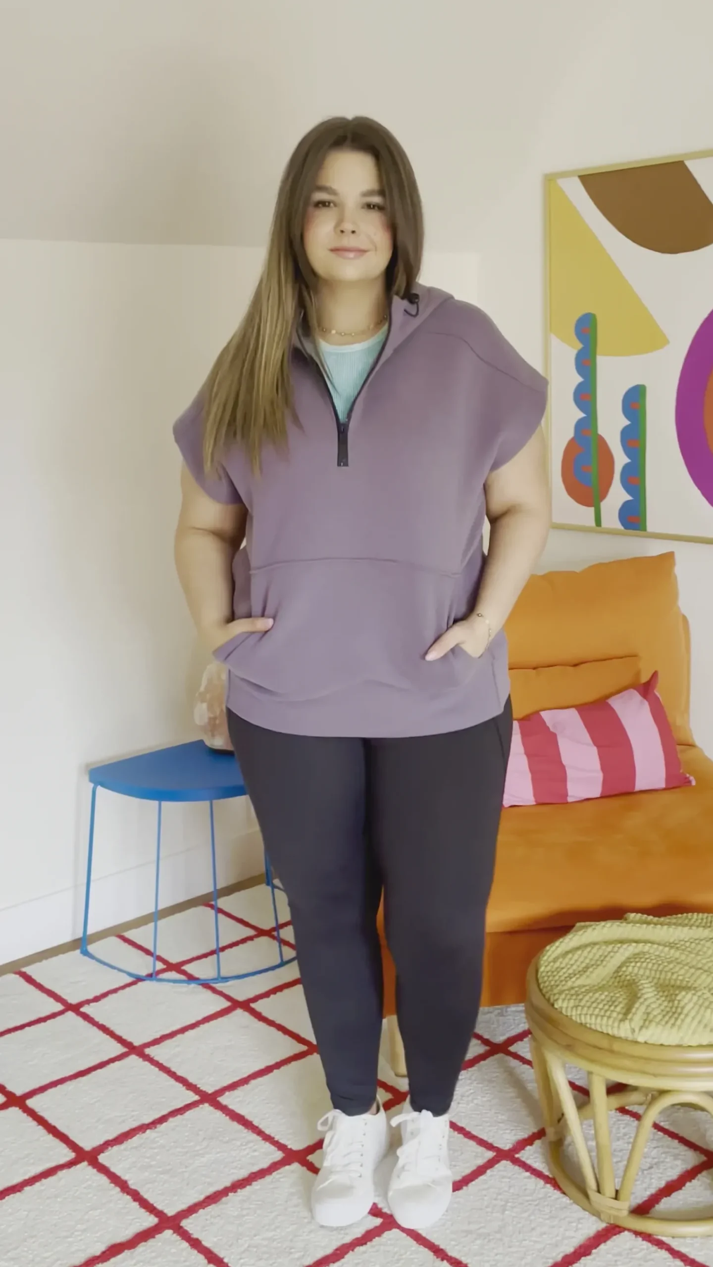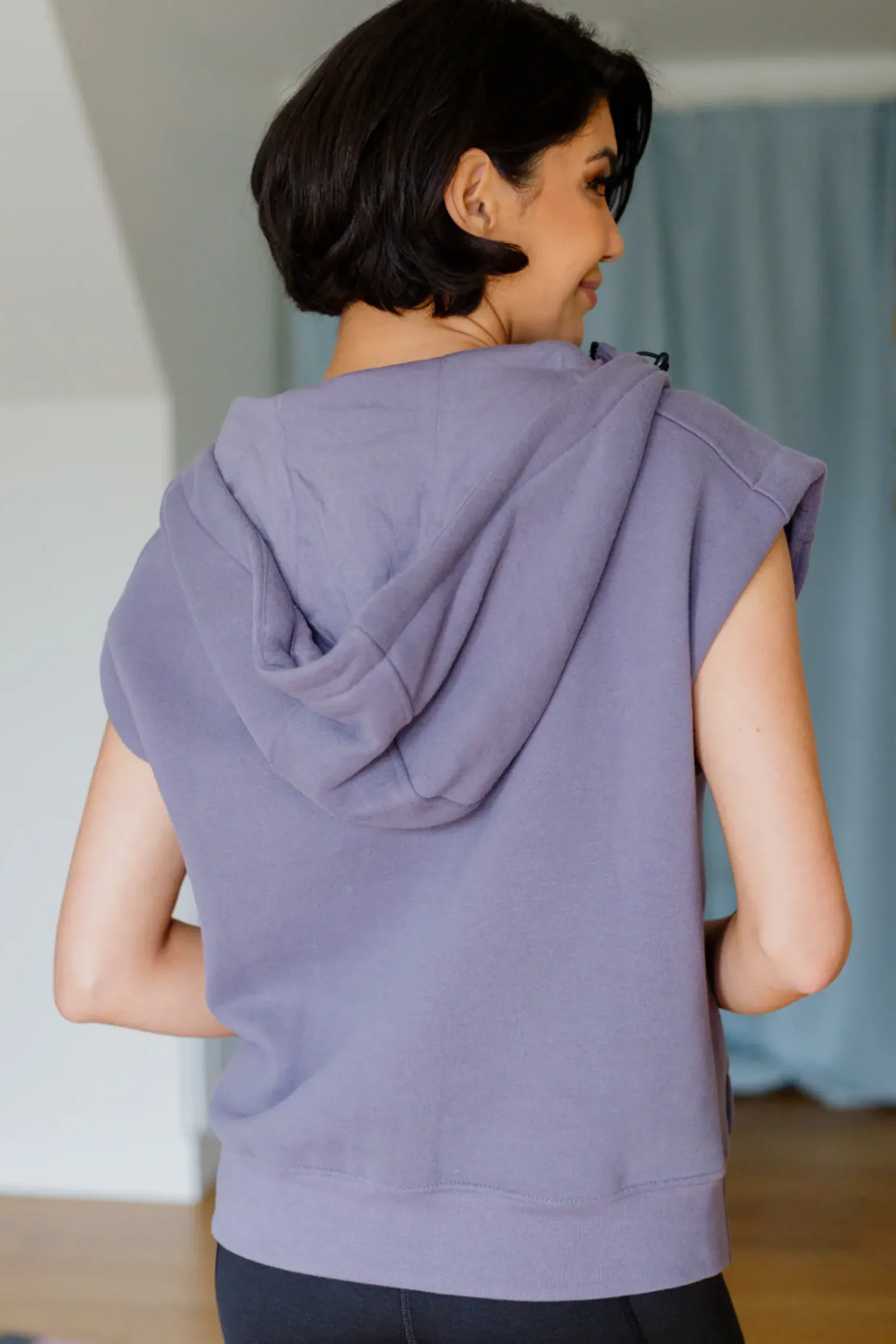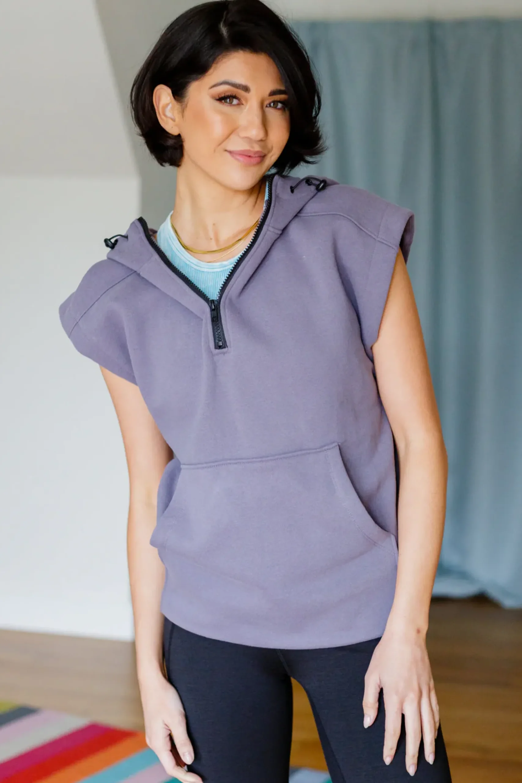 These days we’re all about comfy and functional pieces like the Up and Ready Cap Sleeve Workout Hoodie. This is the perfect cover up for the gym, running errands, or just for lounging around the house! Featuring a thick jersey cotton that shapes a hooded neckline with a functional elastic pull cord and a three-quarter zipper. A loose-fitting bodice boasts dolman cap sleeves and a kangaroo style pocket.
