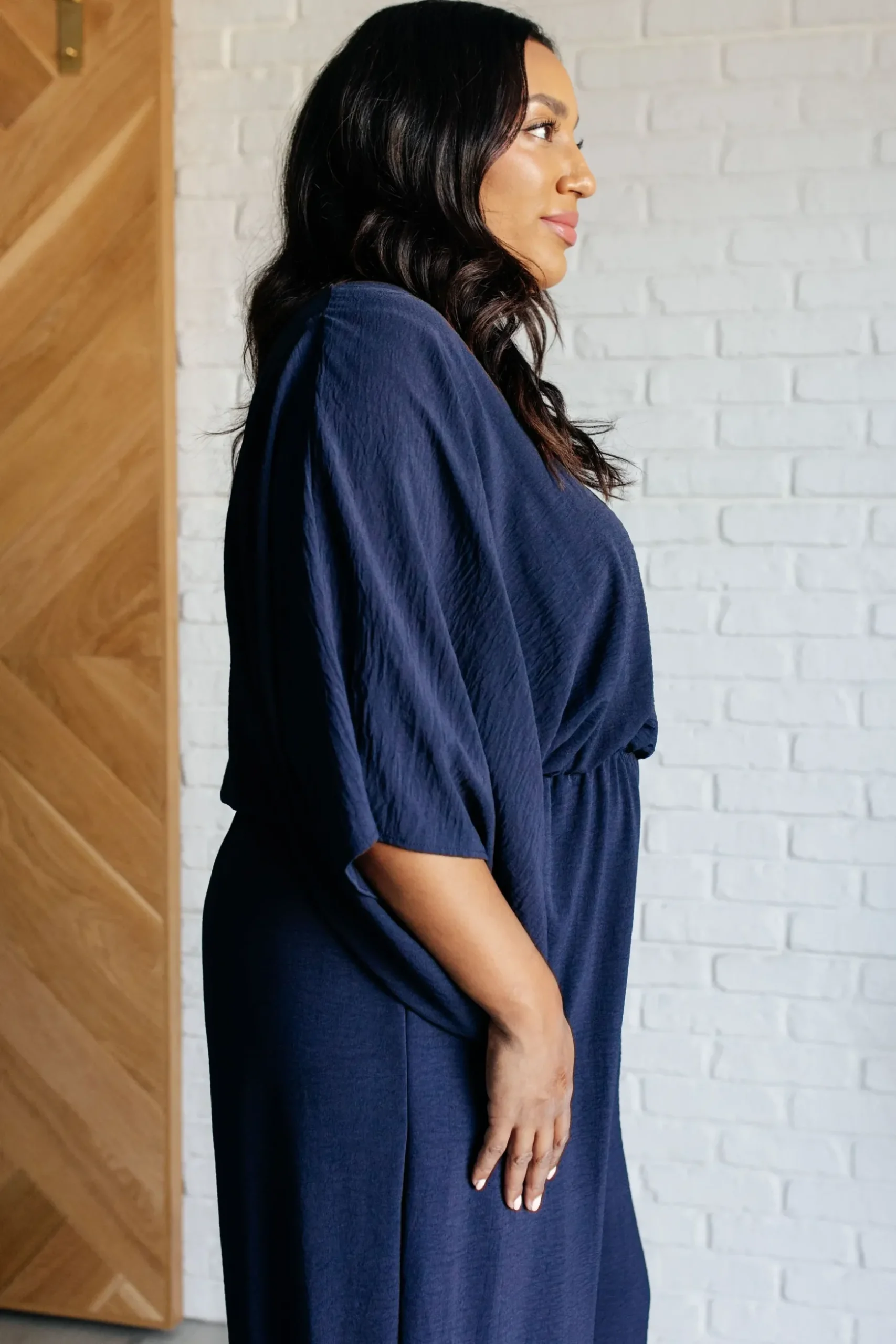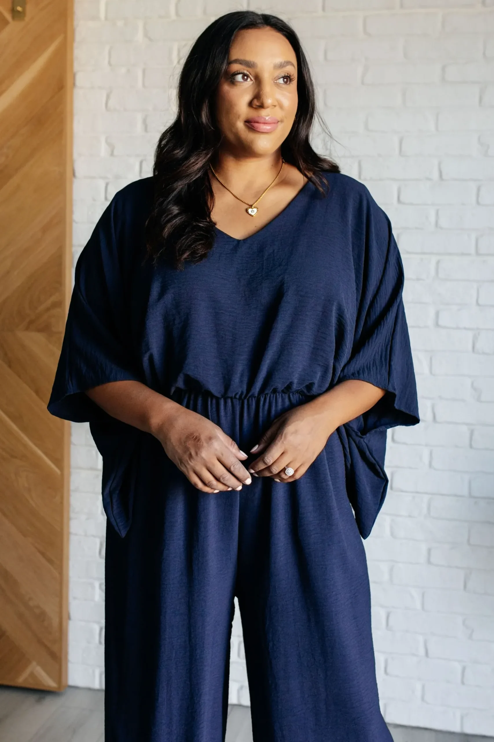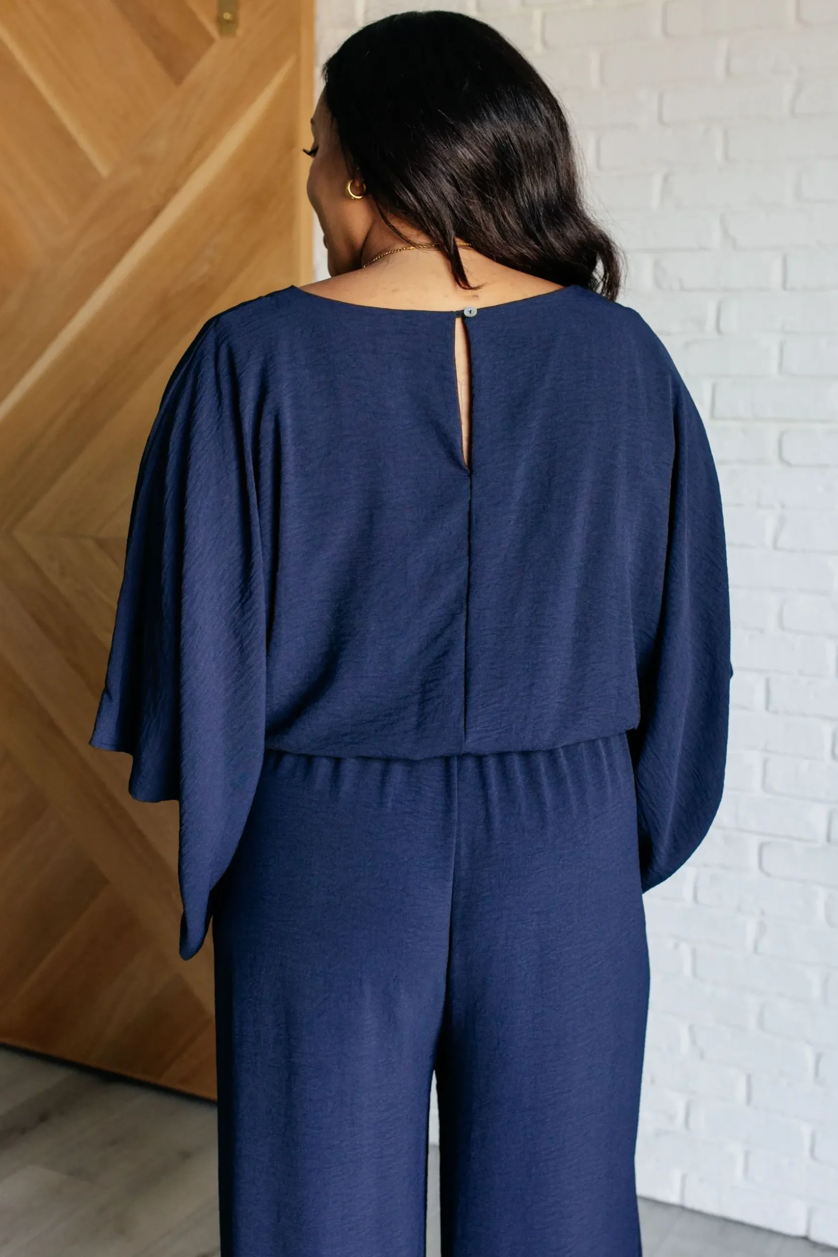 Get ready to turn heads in our Up to Something Wide Leg Jumpsuit! Made of crinkle woven fabric, this jumpsuit features a flattering v-neckline, wide half sleeves, and an elastic waistline for comfort and style. With functional side pockets and a keyhole button closure, this straight leg jumpsuit is perfect for any occasion. (Don’t worry, we won’t tell anyone what you’re up to.)