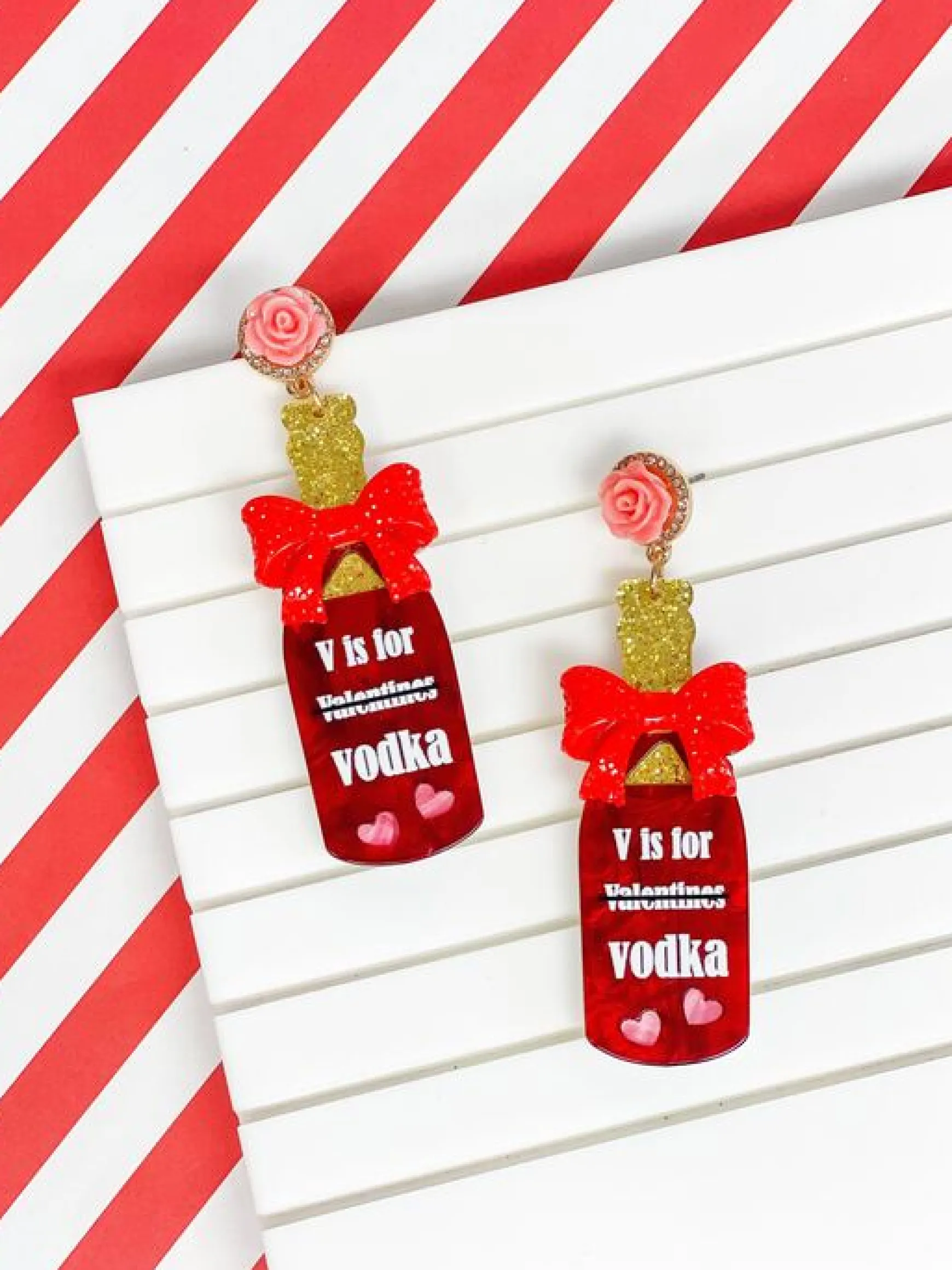 ‘V is for Vodka’ Glitter Dangle Earrings