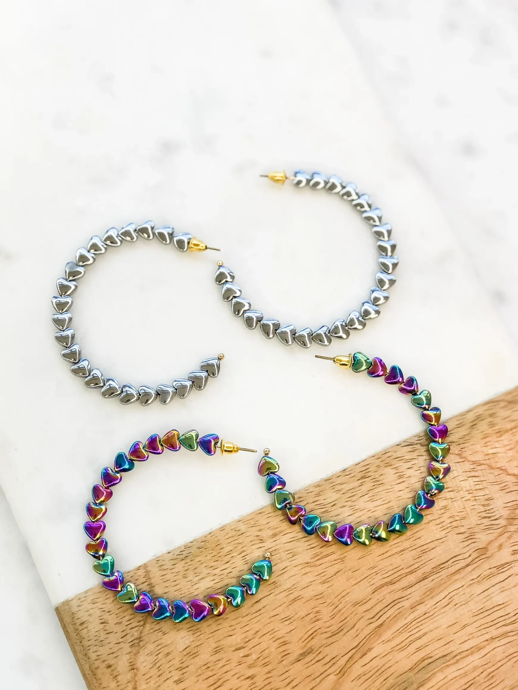 Dainty hearts line these fabulous hoops!