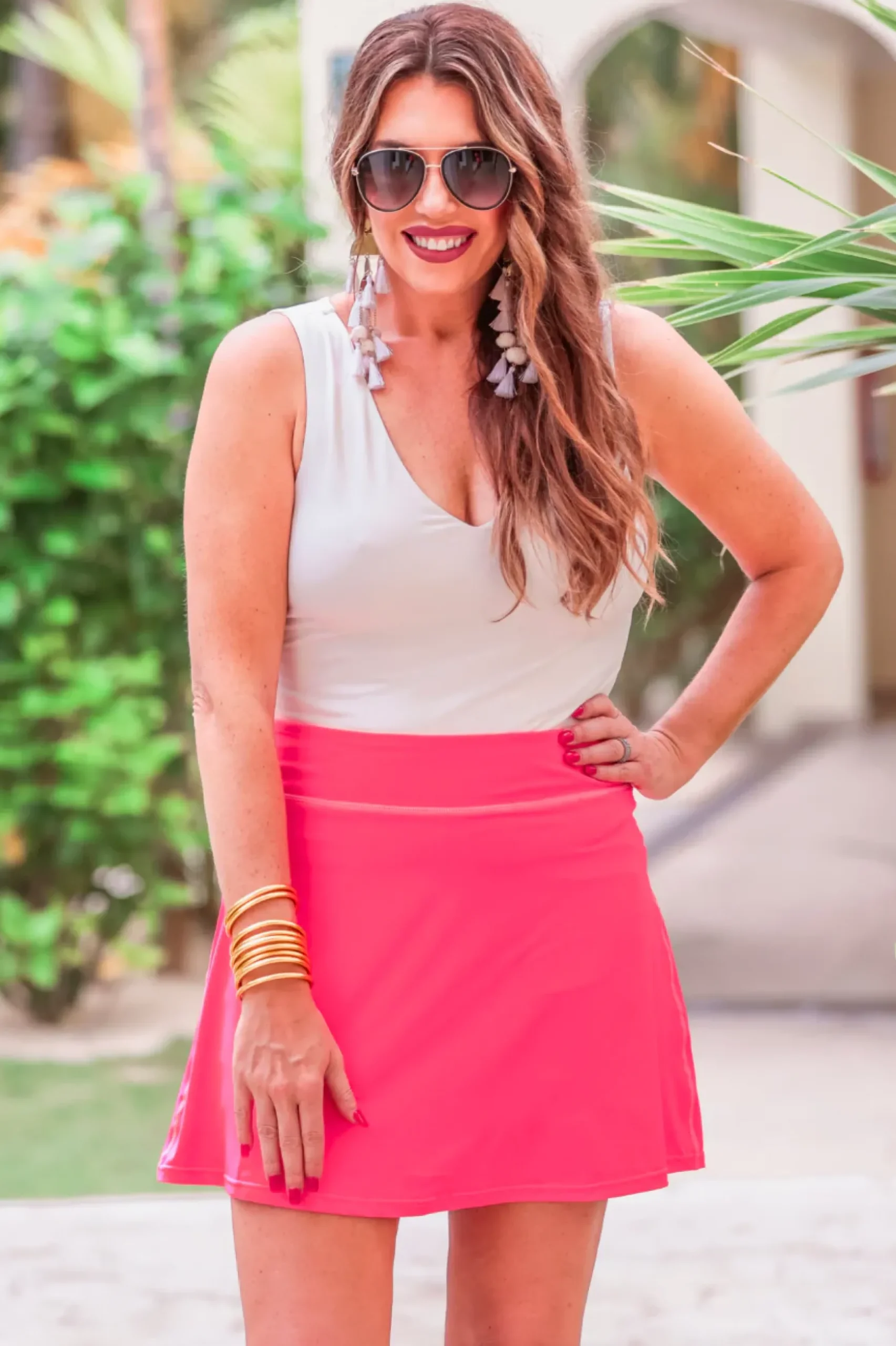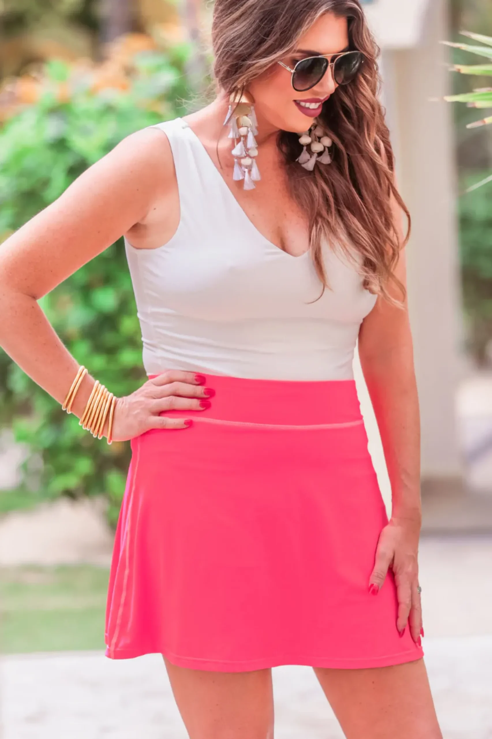 Take on the day in this adorable tennis skort featuring a slimming true to size fit with built in shorts, interior side pockets, and a pleated back. This skort is so versatile for any occasion.