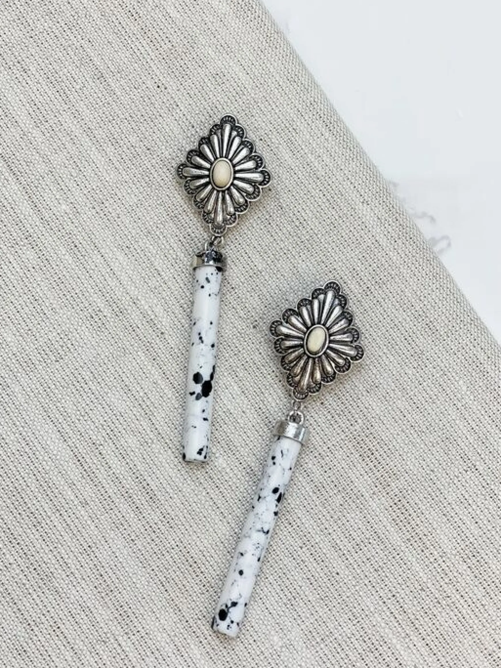 Western Drop Dangle Earrings - White & Black