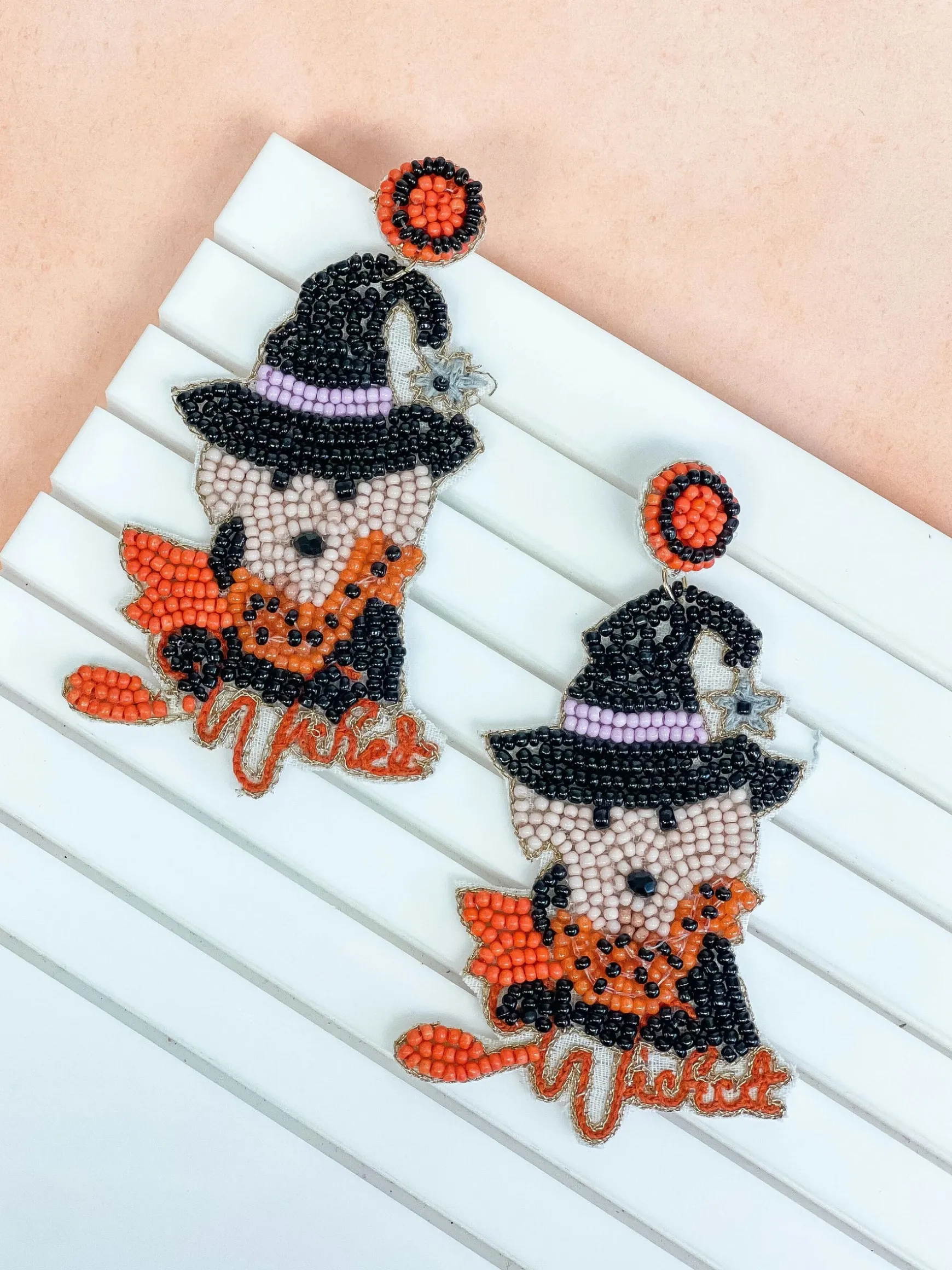 These ‘Wicked’ Puppy Halloween Beaded Dangle Earrings are perfect for adding a hint of spooky style to any look!