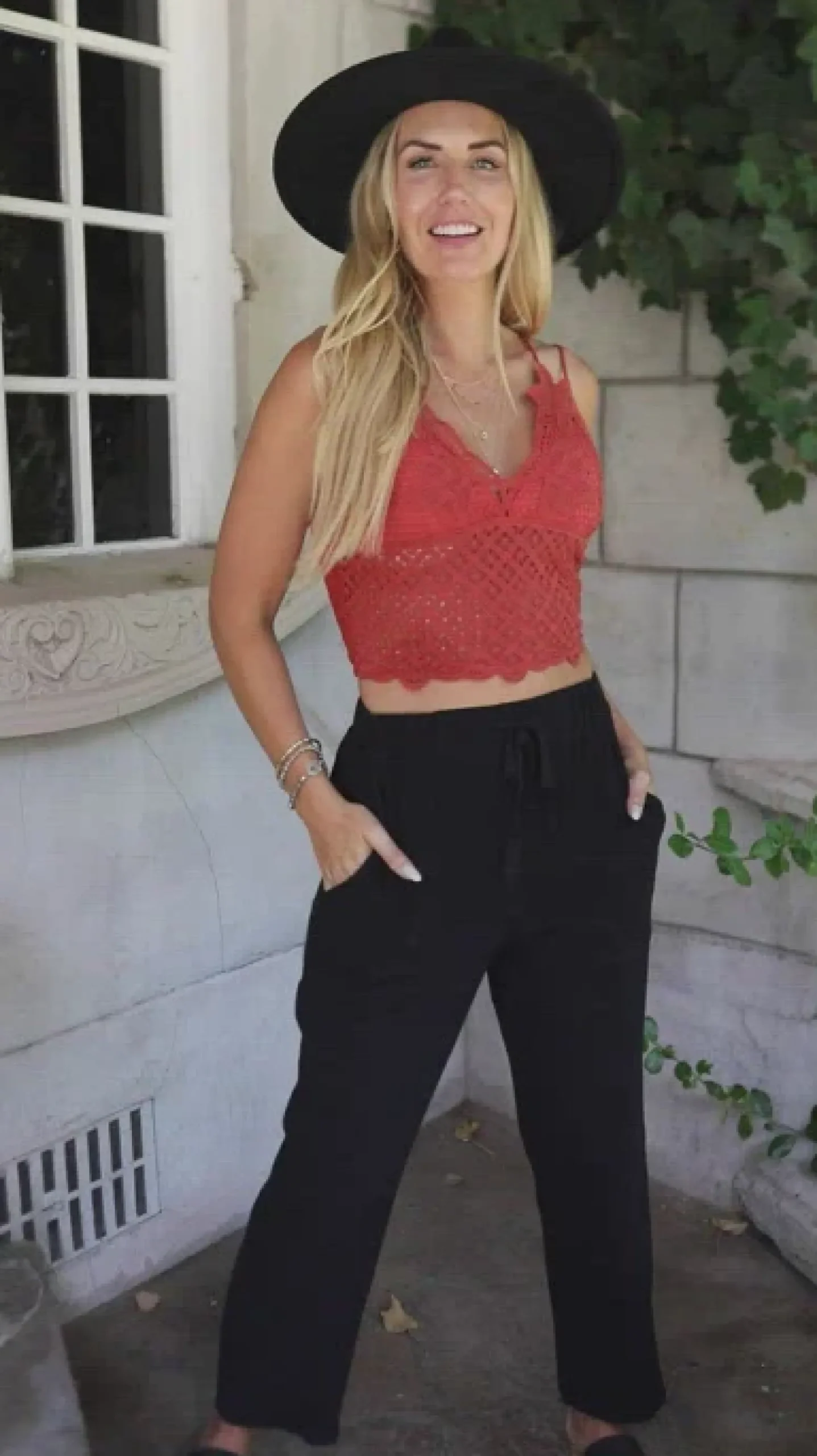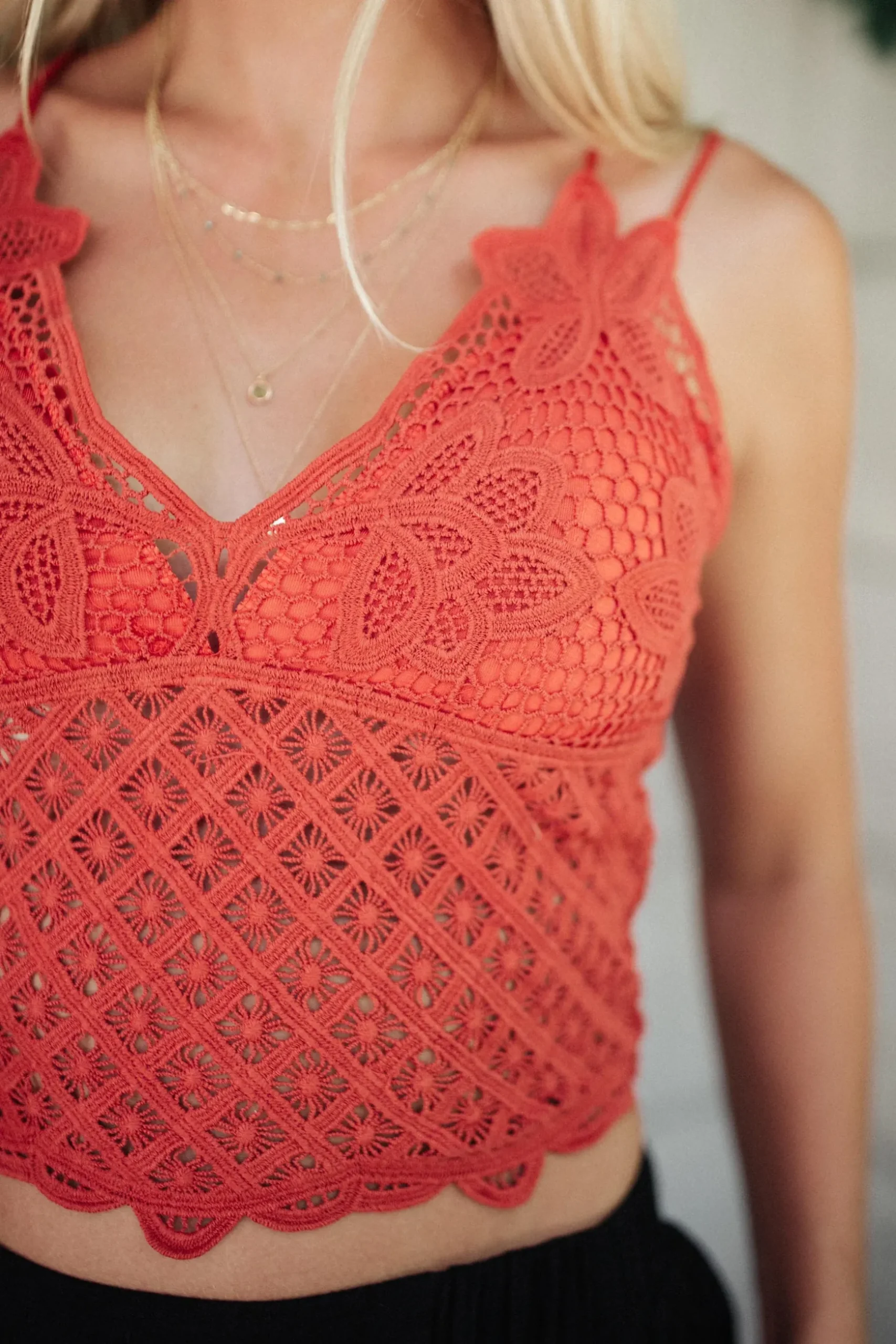 The Wild And Free Crop Top is a beautiful lace tank! We are obsessed with the dainty floral lace and double spaghetti strap. Pair this with shorts or a wide leg trouser for a flirty and feminine outfit.