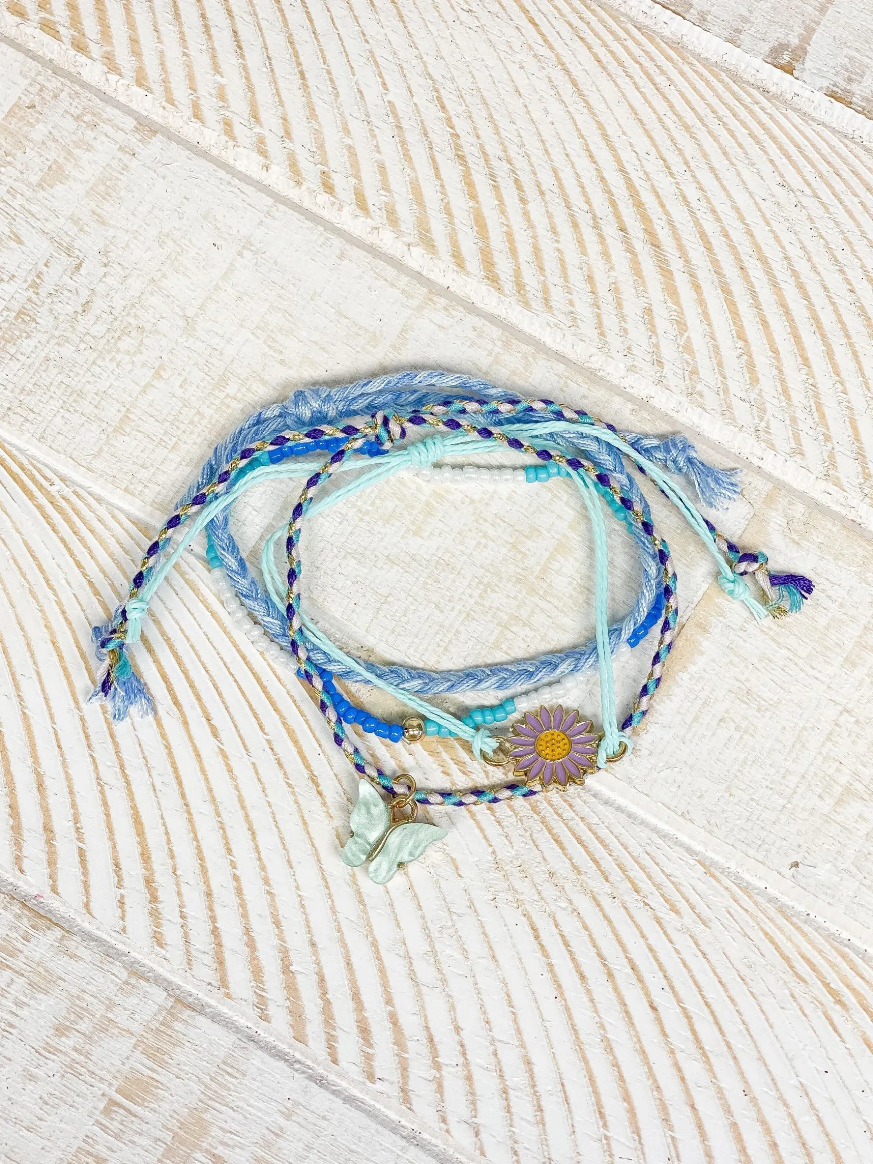 Woven Friendship Bracelet Stack – Blue